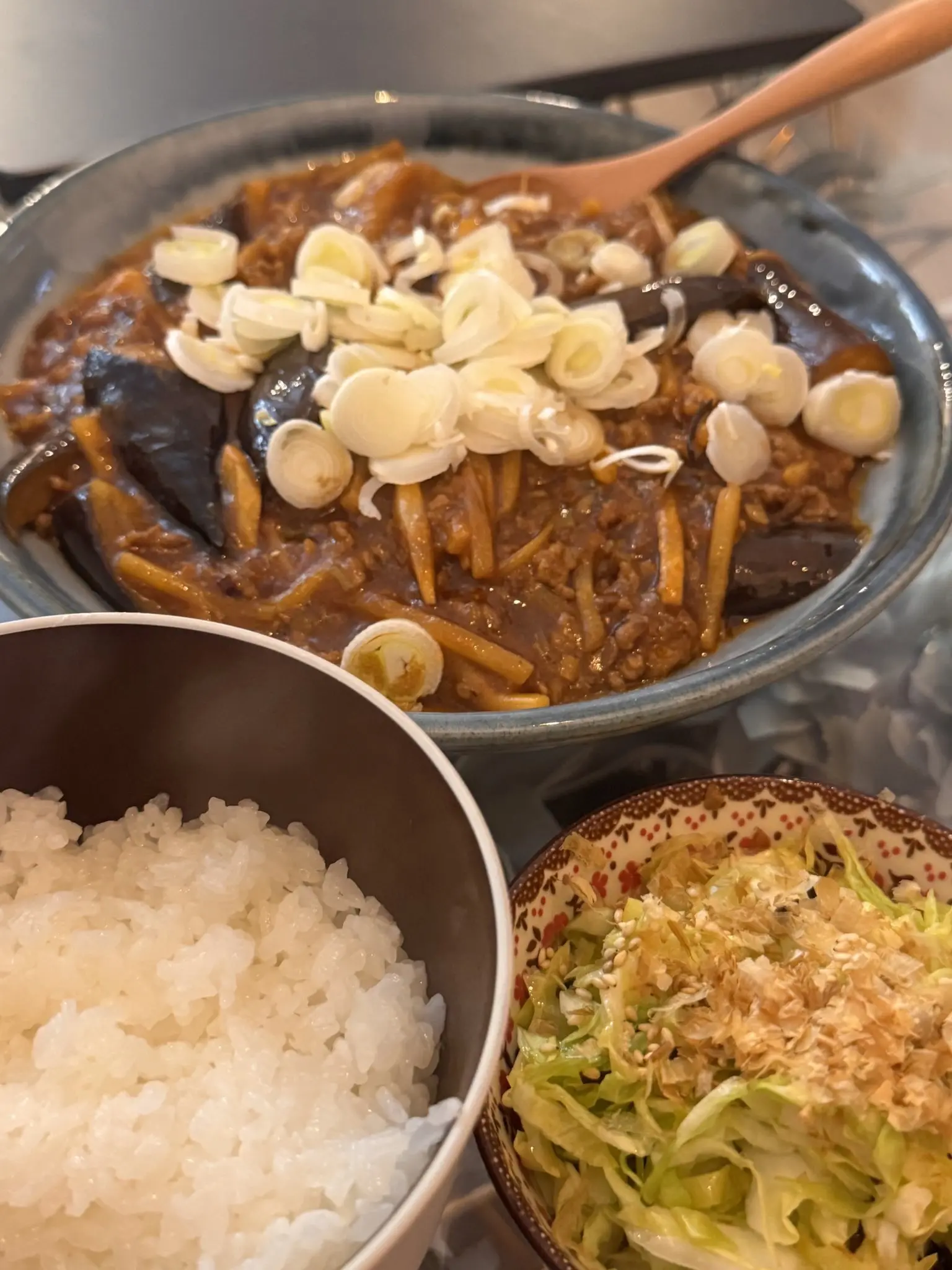 今日的饭菜🍚。牛排盖饭和麻婆笋茄子😺♥♥