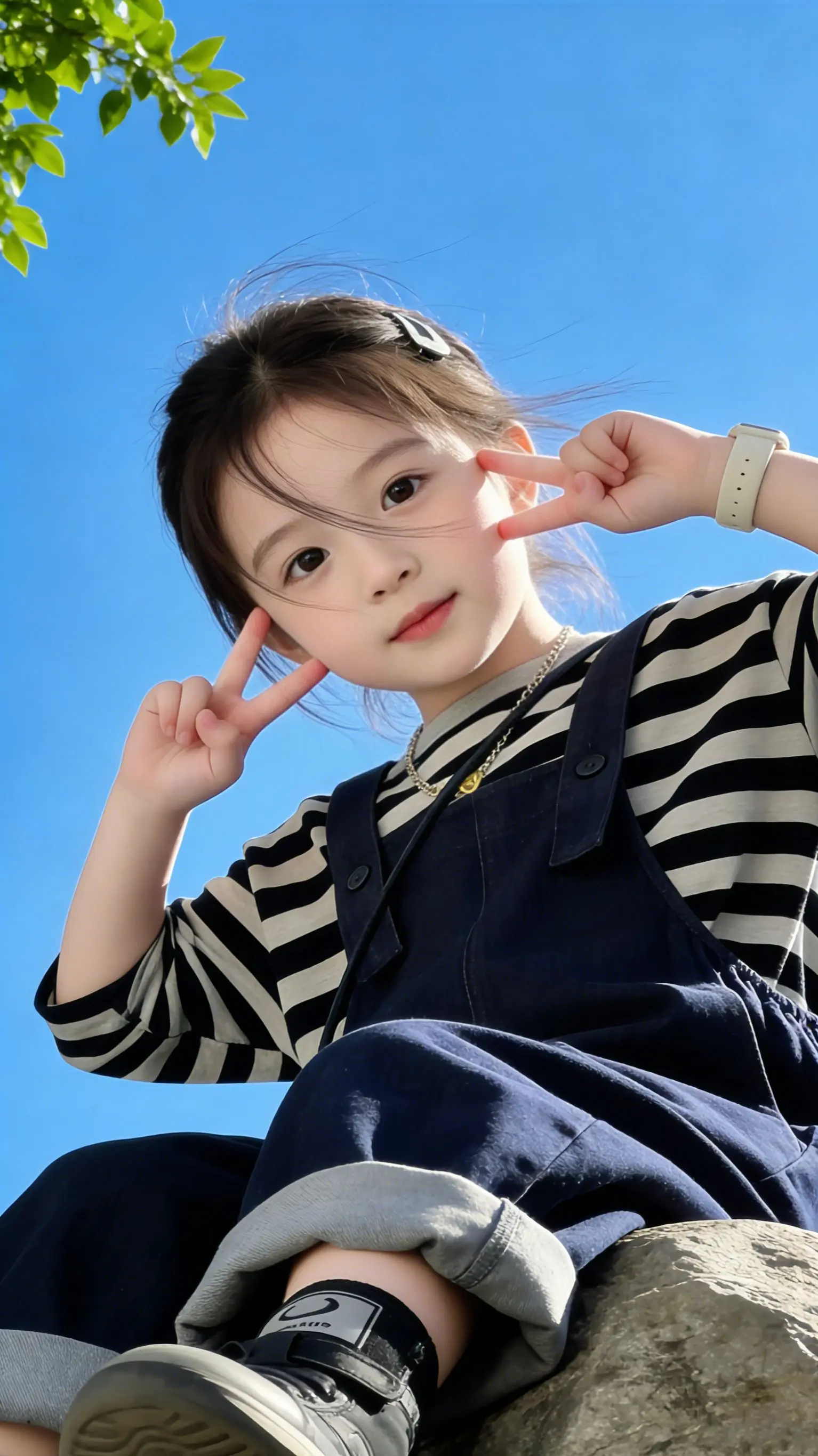 韩系松弛感。甜酷女童穿搭,出门被问800遍! 生女儿的快乐,这套背带裤...