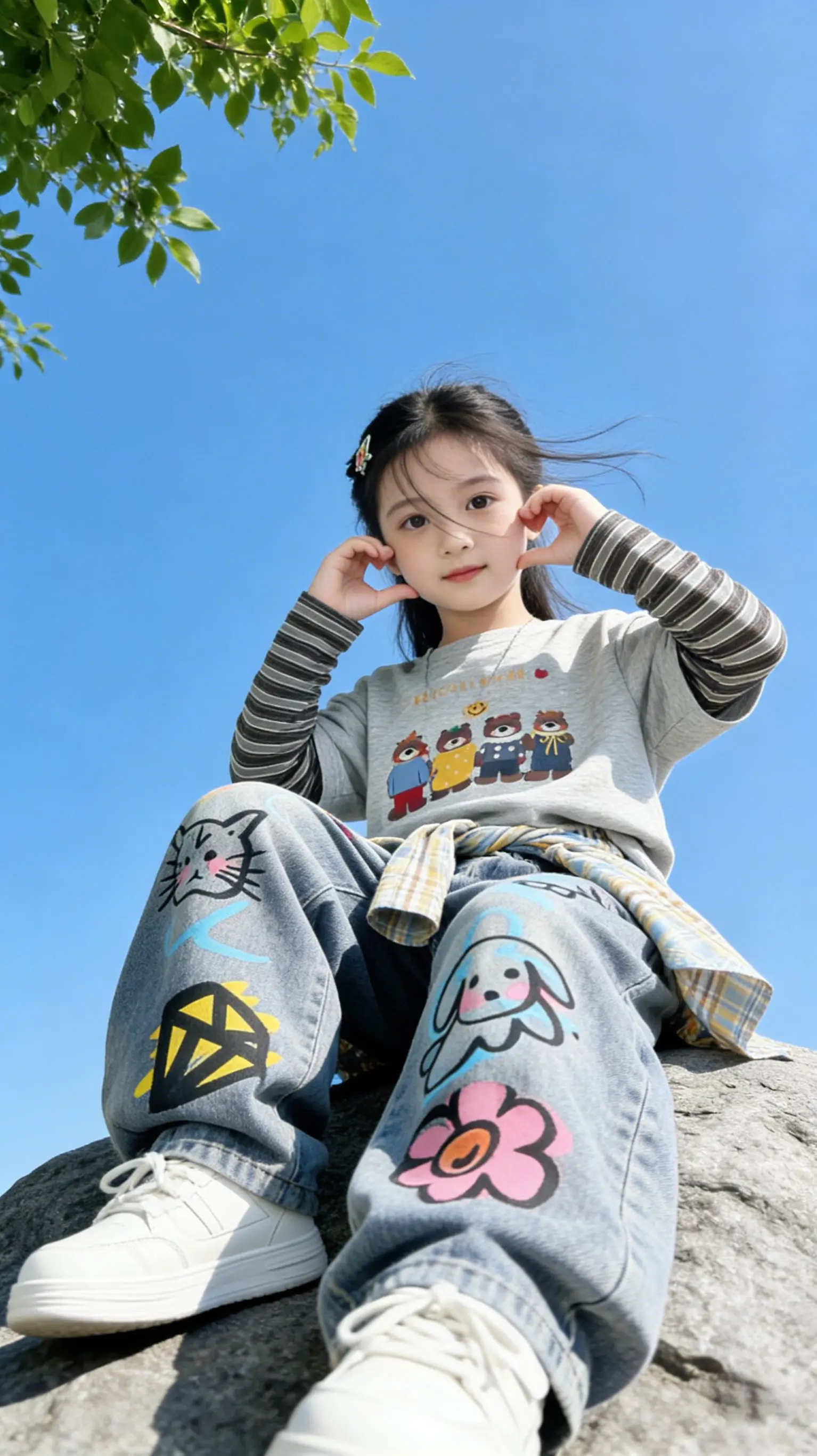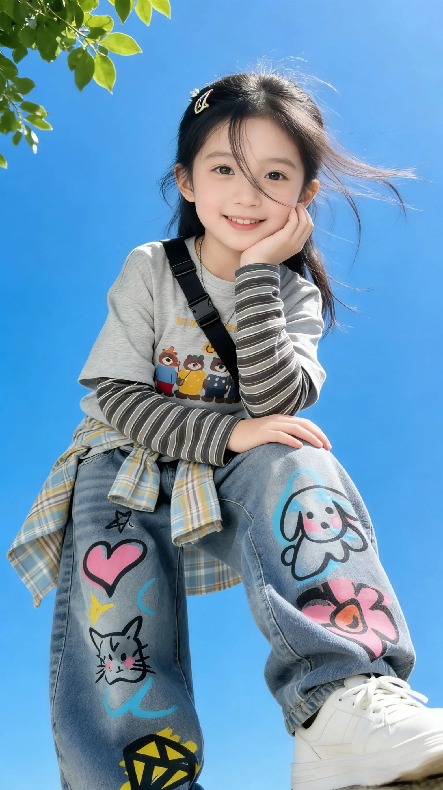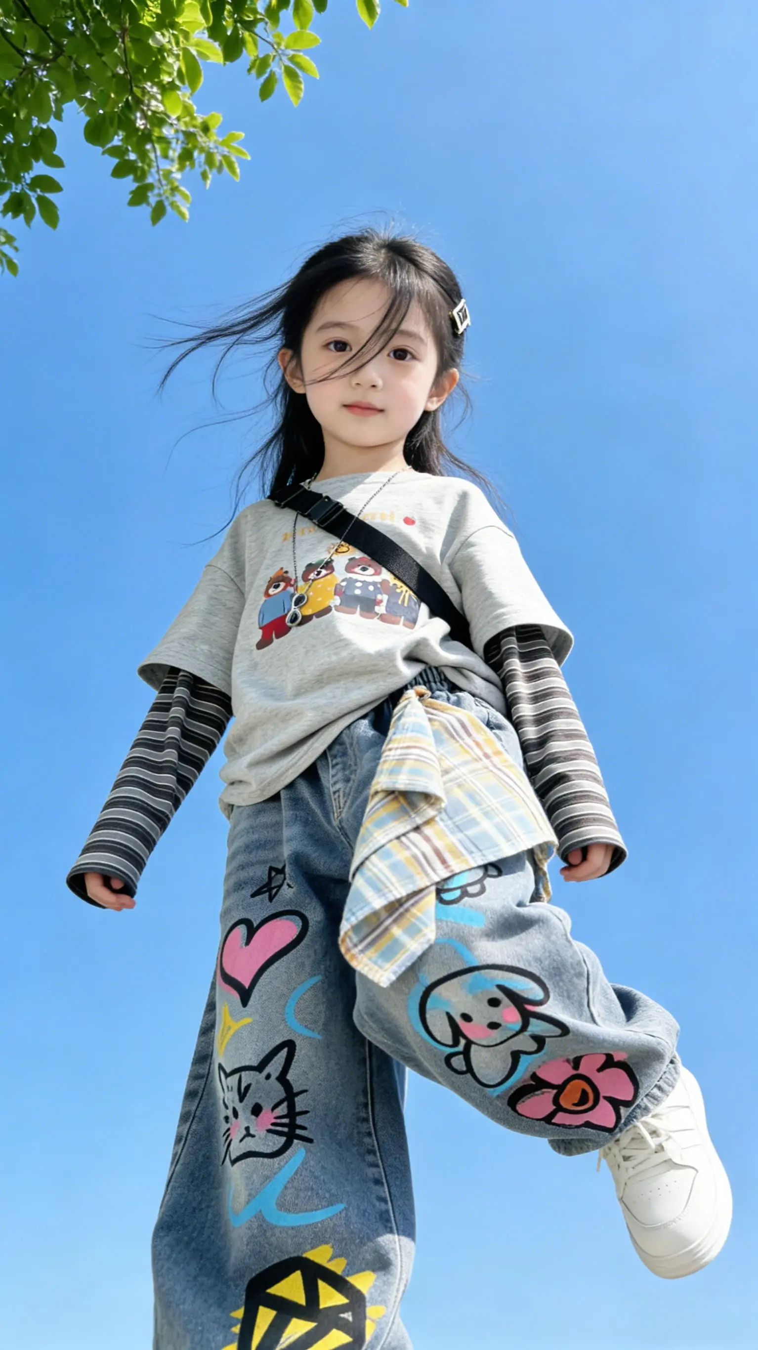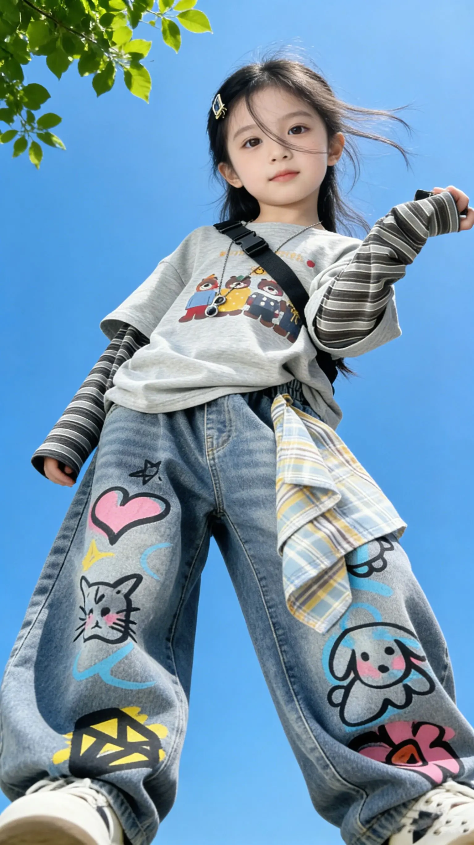 潮娃必备!宝妈们!这套潮酷涂鸦套装直接封神! 假两件卡通T恤,叠穿感拉满, 满印涂鸦阔腿牛仔裤,甜酷感直接炸街!