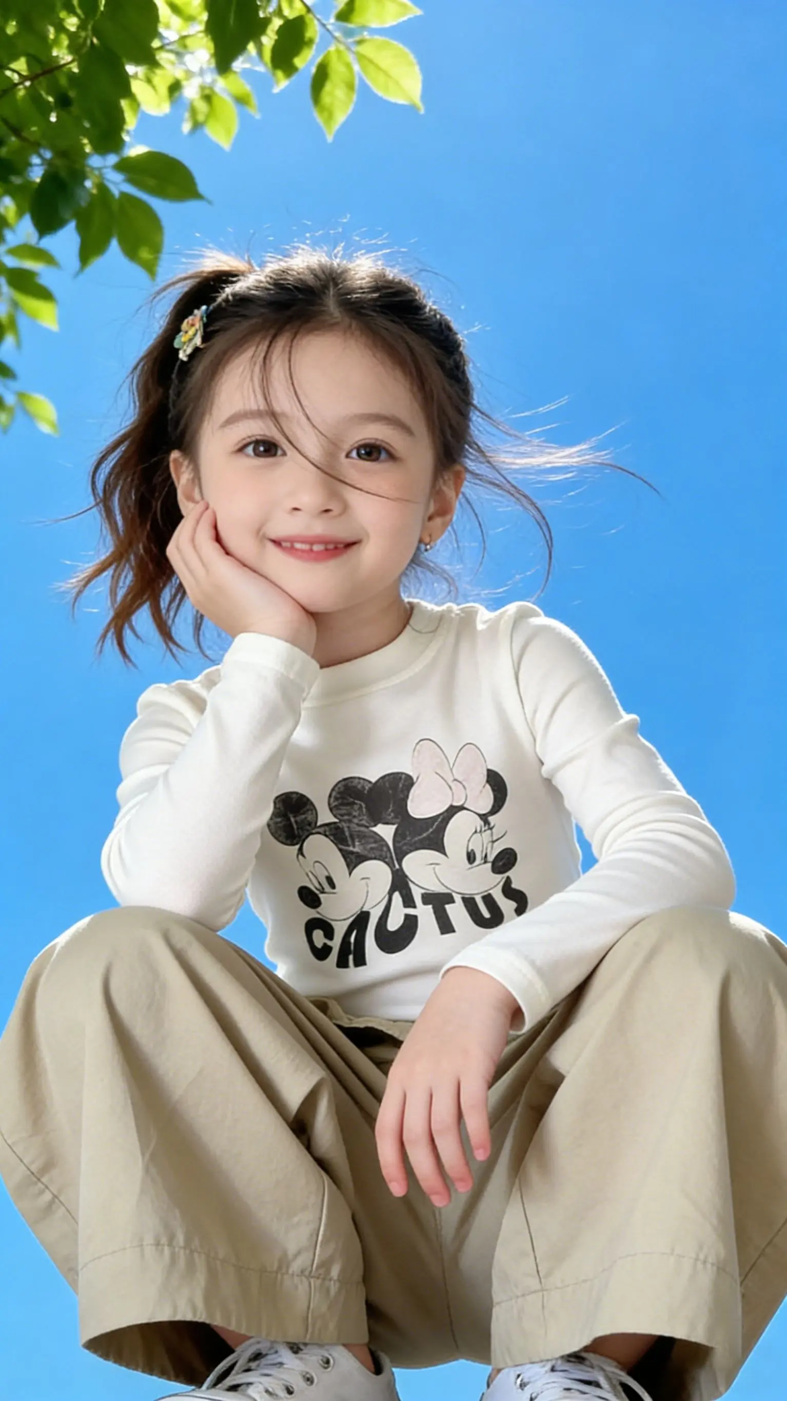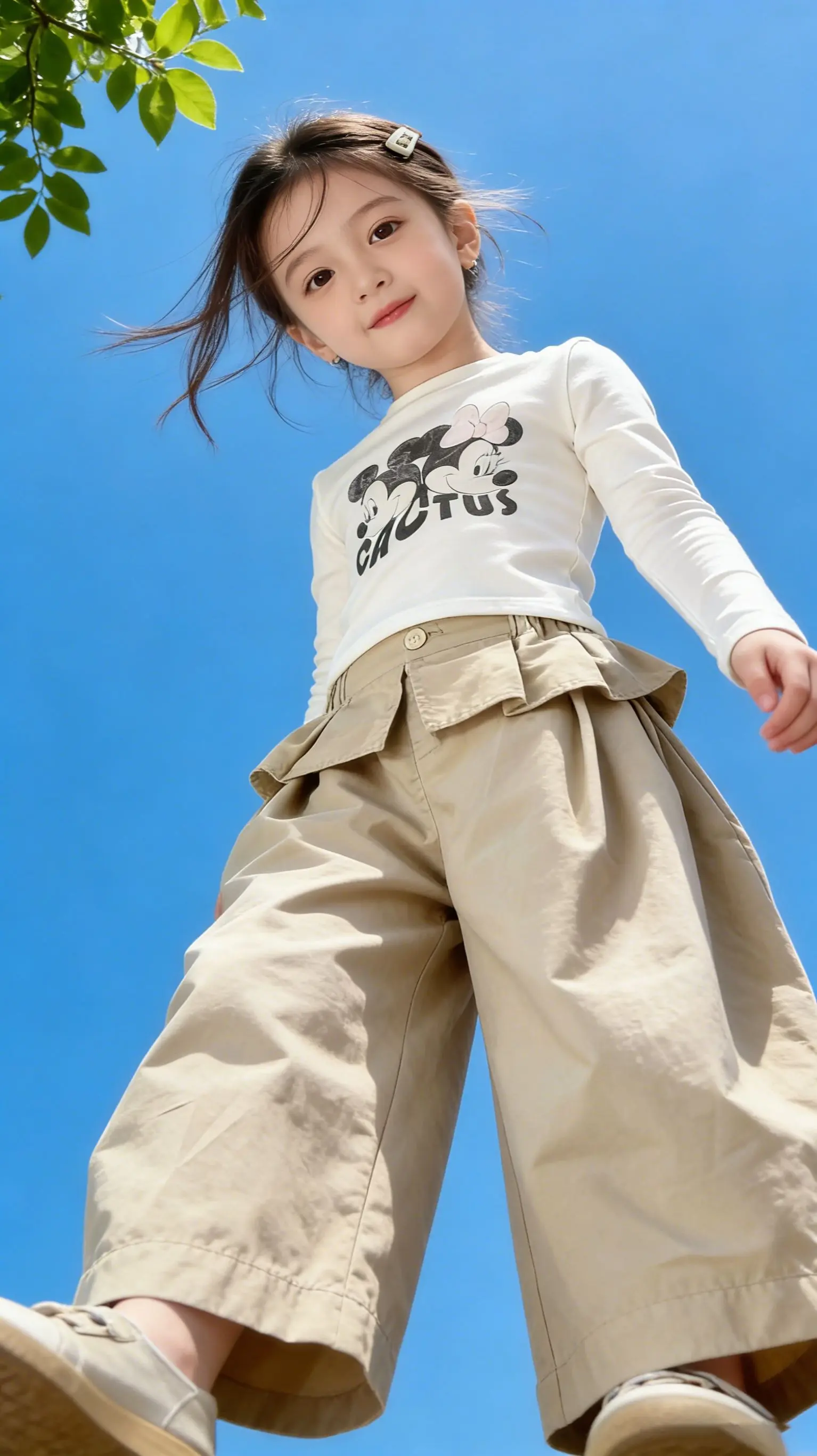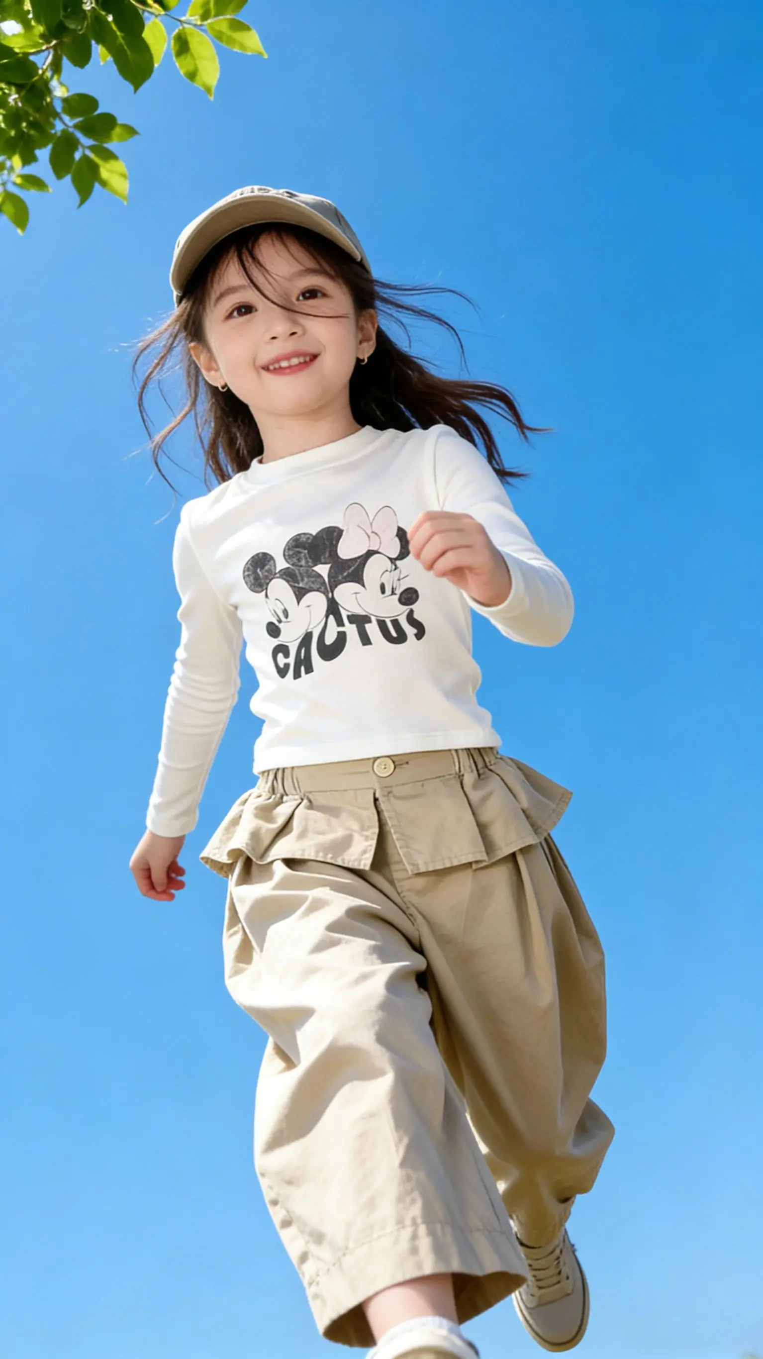 甜酷风拉满!宝妈们!这套米妮休闲套装太绝了! 米老鼠印花长袖T,软乎乎不闷汗, 卡其色荷叶边工装裤,甜酷感拉满!
