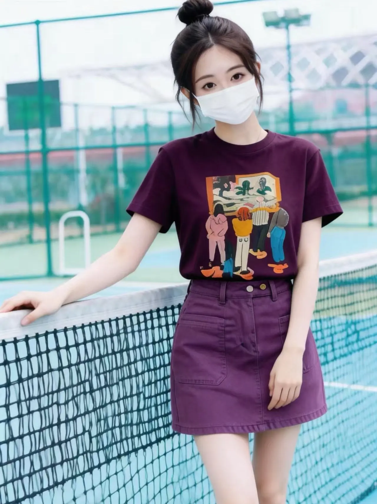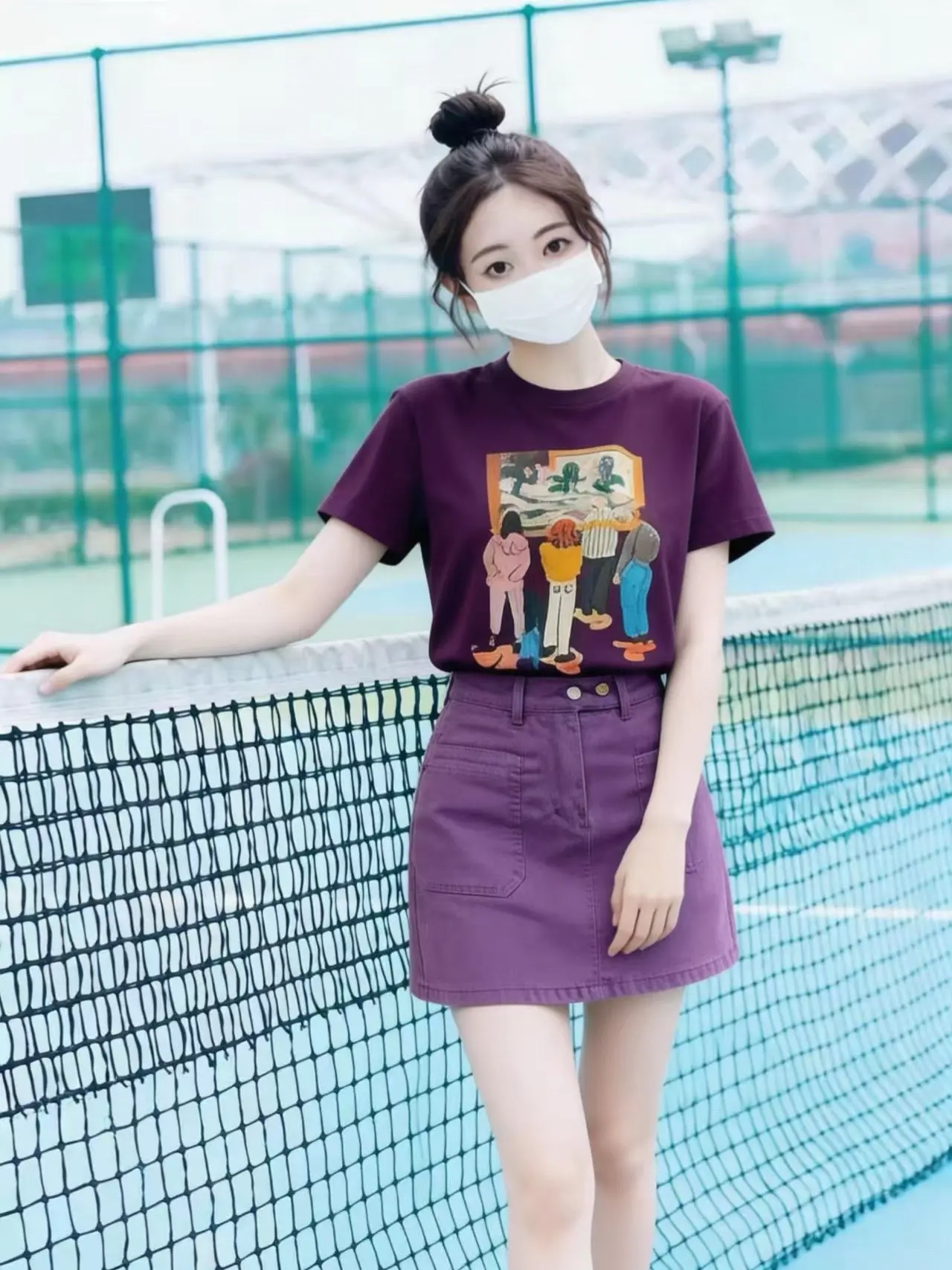这套葡萄紫穿搭,在球场上拍照巨出片📸。夏日运动OOTD|同色系紫T+短裙,元气又减龄✨