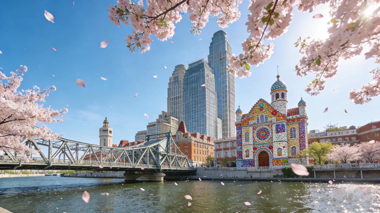 四月的天津,是被海棠花叫醒的。五大道的老洋楼前,西沽公园的小径旁,马场道那棵比大爷年纪还大的西府海棠,花开得像下了一场粉白色的雪。风一吹,花瓣落在遛弯的大妈肩上、停在路边的自行车筐里、掉进海河的水波里。天津人说,海棠花不等人,四月一过就谢了。所以啊,趁花开正好,趁春风不燥,来天津走走吧。锦绣山河,美如仙境——不过是天津四月,最寻常的日常。