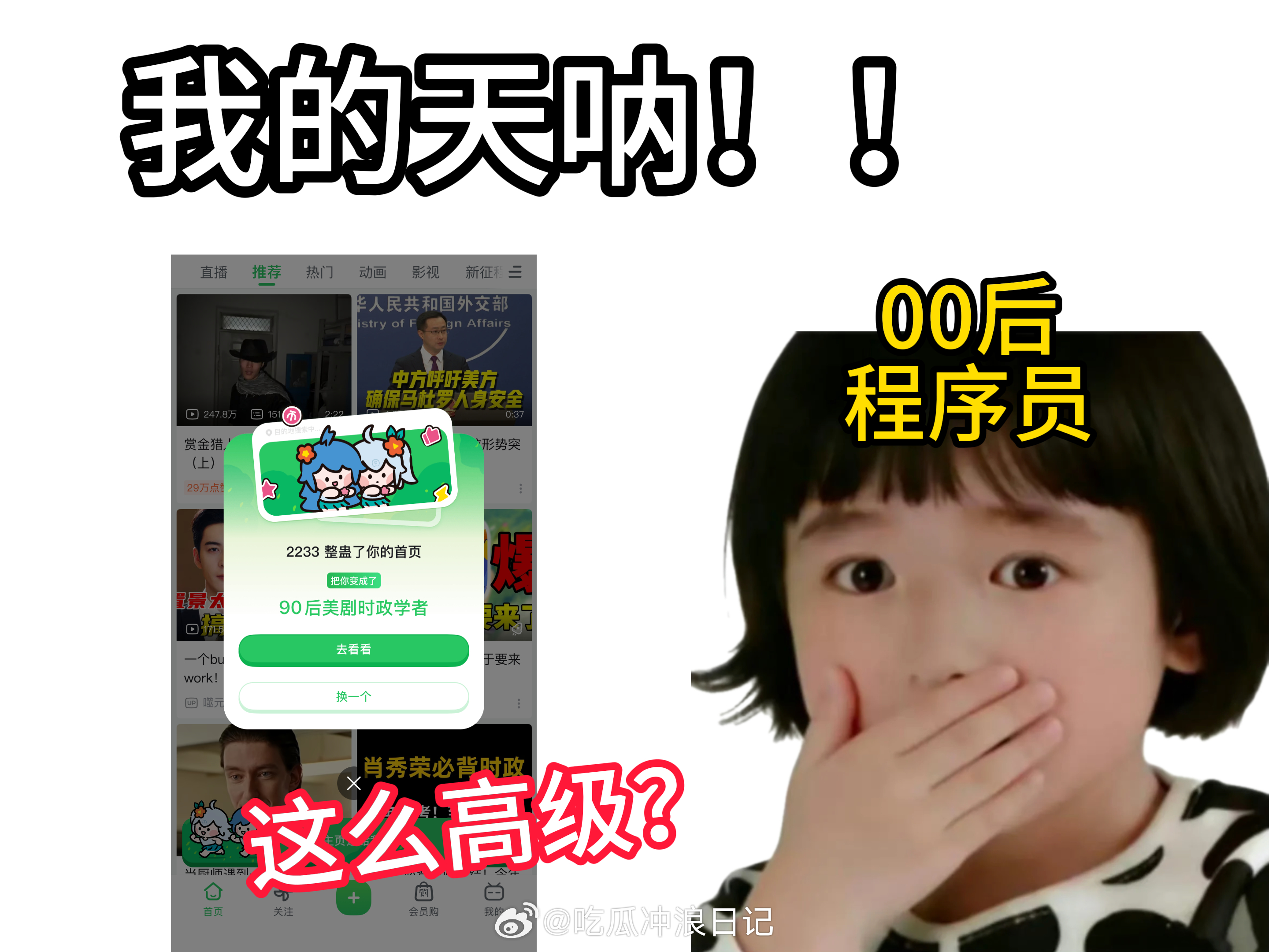 愚人节被00后玩明白了只能说00后上岗之后,互联网是越来越好玩了,这波愚人节玩法也太敢整了吧!给自己选择一个人设就可以解锁完全不一样的首页推荐,相当于光明正大偷看别人平时都在刷什么内容,估计刷着刷着就开始怀疑人生:原来大家私底下都在看这些好东西?建议多来点这种不按套路出牌的创意!!!喜欢有00后的愚人节!!
