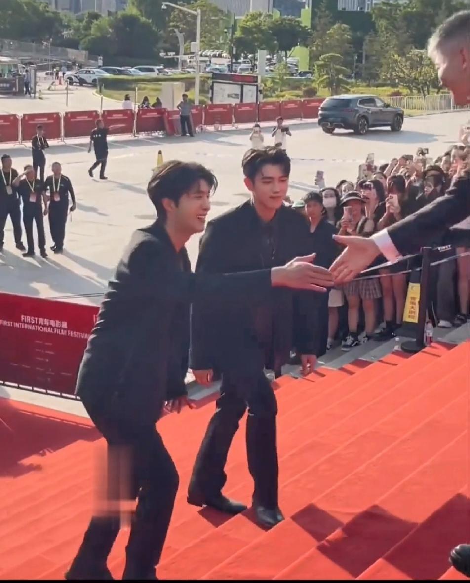 陈飞宇这言谈举止还是有点东西的,见到长辈双手弯腰握手,淡定一笑看起来沉稳又礼貌,边上的大叔不想站中间,把范丞丞推到另一边,陈飞宇发现自己在中间后立马跑到大叔身边,让长辈站在中间,陈飞宇还真的是少年老成,做事周到谦逊,看来陈凯歌作为圈里的老人,还是教了陈飞宇不少东西的!