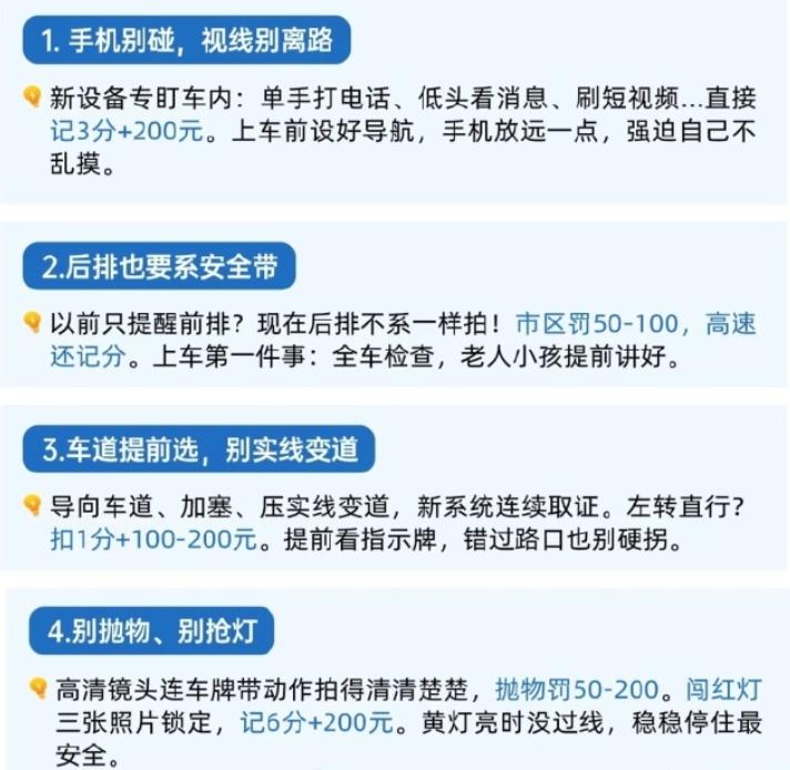 从今天起,后排不系安全带,查到就罚,绝不姑息! 别再抱着老观念耍小聪明了! “后排不用系”“短途没必要”“低速没关系”,这些话,从4月1日起,全是自欺欺人! 很多人总觉得,后排是“安全区”。 错!大错特错! 数据不会骗人:市区40公里/小时碰撞,未系安全带的后排乘客,死亡率是系安全带的3倍多! 更可怕的是,你不系安全带,不仅害自己,还会像炮弹一样撞向前排,连累司机和副驾! 别再说“罚得轻,无所谓”,几十块的罚款,是提醒,不是目的! 真正的代价,是万一出事,连后悔的机会都没有! 记住!这次严查,不是新法规,是老规矩动真格! 取消连坐,谁违规罚谁,不搞株连,但也别想侥幸! 后排成年人不系,罚本人!司机没提醒,罚司机!儿童不坐安全座椅,罚监护人! AI高清摄像头全覆盖,识别率超98%,深色车窗也能穿透,虚扣、假系、用限位器作弊,一抓一个准! 高速、快速路,查到直接罚50元/人,没有首次警告! 普通道路,首次警告,再犯照样罚! 有人说“老人勒得慌”“孕妇不方便”,别找借口! 孕妇可以调整佩戴方式,老人可以选宽松的系法,没有例外,只有侥幸! 那些觉得“查几天就松了”的人,醒醒吧! 这次严查,是常态化!是为了倒逼每一个人,养成上车就系安全带的习惯! 系安全带,不是应付检查,是为了在关键时刻,能保住自己的命,能平安回家! 别等事故发生,才追悔莫及;别拿自己和家人的安全,赌那一丝侥幸! 从今天起,不管坐前排还是后排,上车第一件事,系好安全带! 最后想问一句:你平时坐后排,会主动系安全带吗?你觉得这次严查有必要吗?评论区说出你的看法,转发给家人朋友,别让他们白白被罚、白白冒险!