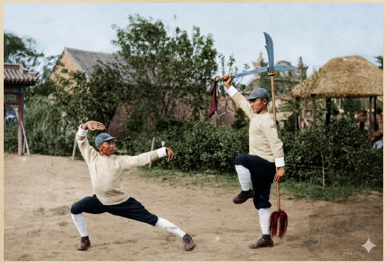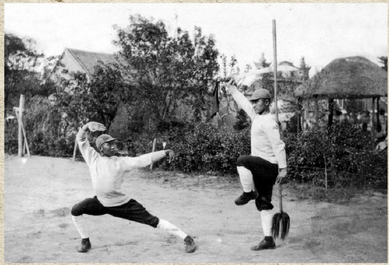 这张旧照,是华日军独立野战重炮第15联队上等兵田中岛义私人相册中找出来的,它是1937年12月南京沦陷后,日军从中国军队营地掠夺的私人影像,记录的是国民革命军陆军第87师、第88师官兵的战前日常训练。 左侧士兵呈大开大合的弓步武术架势,右侧士兵单腿独立、高举长兵器,是典型的中国传统武术训练。德械师虽以德式装备、德式战术为核心,但仍保留传统武术训练,用于近身格斗、提振士气,是中国军队的特色印记。可没人能想到,几个月后,他们中的绝大多数,都倒在了淞沪的血肉磨坊、南京的巷战废墟里,再也没能回来。而留存这张照片的,正是用重炮轰开南京城、屠杀他们的日军士兵。 87师、88师是民国时期国军的王牌德械师,是1937年全面抗战爆发后中国军队的核心主力,淞沪会战期间,两师作为首批投入战场的部队,在闸北、虹口等核心阵地与日军血战3个月,以血肉之躯抵挡日军海陆空火力,伤亡超70%,精锐几乎打残;撤入南京后,两师作为守城核心部队,城破后多数官兵壮烈殉国,几乎全军覆没。