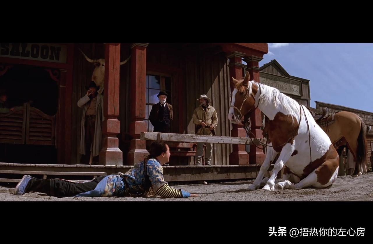 现在再看成龙这部老电影,才懂当年的他有多会拍 现在翻出成龙2000年的这部《上海正午》,真的越看越感慨,当年的成龙,是真的把功夫喜剧玩到了骨子里。 估计不少朋友都看过这部戏,故事特别简单:清朝皇宫里的带刀侍卫,为了找回被掳走的佩佩公主,一个人千里迢迢跑到了完全陌生的美国西部。 你想想这个画面有多反差?一个梳着长辫子、穿着官服、满口规矩的清朝人,一头扎进了满是牛仔、劫匪、印第安人的西部荒野,光是这个设定,就自带满满的笑点和看点。 就像这些画面里拍的,前一秒他还在皇宫里规规矩矩接圣旨,下一秒就摔在西部小镇的泥地里;前一秒还是正经的御前侍卫,后一秒就混进印第安部落,戴上了狼头帽子,活脱脱一个“中西混搭”的搞笑形象。 最难得的是,这部戏的笑点一点都不尴尬,不是硬给你塞网络烂梗,也不是靠演员挤眉弄眼。所有的好笑,都来自于人物的反差:一个不懂英语、不懂西部规矩的东方人,在陌生的地方闹出来的各种笑话,自然又不生硬。 更别说成龙标志性的功夫打戏了,全程没有花里胡哨的特效,全是实打实的真功夫。他从来不是硬邦邦地打架,而是随手拿起身边的东西当武器,打得又利落又好玩,连泡个澡的功夫,都能打出一堆让人印象深刻的名场面。 还有他和那个不着调的西部混混搭档,俩人一个正经一个散漫,凑在一起简直是一对活宝,化学反应直接拉满。 现在看惯了太多靠特效堆出来的打戏,靠烂梗凑出来的喜剧,再回头看成龙20多年前的这些老电影,才知道什么叫看着舒服、看着过瘾。没有多余的花活,就是认认真真拍好动作,讲好笑话,让你笑着看完,还能记住里面的名场面。 不知道大家有没有看过这部《上海正午》?你印象最深的,是里面的哪个片段?成龙