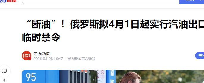 都以为普京要趁着油价飞涨,大捞一笔。 结果他直接把油管子的阀门给拧死了。 2026年4月1日,全球油价彻底炸了,布伦特原油直接冲破112美元一桶。全世界的交易员心都提到了嗓子眼,结果莫斯科突然宣布:从今天起,停止所有汽油出口,一停就是四个月。 要知道,这时候国际油价疯涨,卖方那可是绝对的“大爷”,谁手里有油谁就有话语权。可俄罗斯偏偏反着来,主动关上了出口大门。这事其实就一句话:在能源交易里,能买到油,比能卖多少钱重要多了。 为啥俄罗斯要这么干?说白了,自家的油箱都快保不住了,哪还有多余的油卖?从去年开始,俄罗斯境内好几家炼油厂,就被无人机精准打击,全俄的炼油能力直接少了十分之一。 到了3月下旬,圣彼得堡附近的炼油设施又被炸瘫痪了。更要命的是,受西方制裁影响,炼油厂的核心设备坏了,以前一个月就能修好,现在得拖整整一个季度。再加上国内春耕播种,到处都要用油,刚需摆在这,俄罗斯只能先顾着自己人。 俄罗斯这一停供,邻国直接懵了,瞬间陷入绝境。首当其冲的就是白俄罗斯,他们家超过90%的成品油,全靠俄罗斯供应。禁令一生效,明斯克的街头老百姓半夜就排起长队加油,生怕加不到油。 还有哈萨克斯坦,虽说自己也产原油,但没本事精炼,一半的成品油都得靠俄罗斯补缺口。禁令生效还不到一个月,当地油价直接涨了快80%。这些内陆国家,一旦能源断供,根本没辙,只能被动挨打。 蒙古和吉尔吉斯斯坦也慌了神,赶紧到处找其他供油渠道,急得像热锅上的蚂蚁。这些国家的遭遇,说白了就是能源地理的残酷真相:离俄罗斯越近、越靠内陆,越怕这种供应说断就断。以前嘴上喊的“邻里友好”,到了资源紧缺的时候,根本不管用。 有意思的是,另一边的欧洲,却异常冷静,跟没事人一样。这两年,欧盟早就发力,通过各种法律和基建调整,基本摆脱了对俄罗斯能源的依赖。现在欧洲进口的石油里,俄罗斯的占比还不到3%。 人家有成熟的炼油工业,早就把能源航线转到美国那边了,建成了自己的供应体系。虽说油价波动还是会影响老百姓的日子,但想靠断供拿捏欧洲的经济命脉,根本不可能了。 咱们中国受到的影响也很小。为啥?因为咱们一直坚持自己买原油,回国自己加工,而且咱们的炼油产能,在全世界都是第一。这种硬实力,就保证了国内成品油供应稳如泰山。 就算国际油价闹得再凶,咱们也能满足自己的需求,甚至还能往外出口。这种自己能加工的能力,在极端情况下,就是最靠谱的安全保障。 俄罗斯这四个月的禁令,其实暴露了一个大问题:以前的能源全球化,早就变味了。以前只要有钱,就能买到任何能源,现在不行了,市场变得支离破碎。各国都开始给自己划“安全区”,怕遇到极端情况被卡脖子。 手里有矿产开采权,不代表就能说了算。俄罗斯宁愿少赚点外汇,也要稳住国内的局势,同时也给全世界提了个醒,能源安全,从来都不是靠别人。 俄罗斯一拧紧供油阀门,那些没能力炼油的内陆邻国,才算真正尝到了大国博弈的重量。 现在所有人都在等7月份,看这个禁令到期后,油价和各国的局势会怎么发展。在这场反复的拉扯中,每个国家都在重新盘算自己的能源底牌,毕竟,只有手里有“硬货”,才能在乱世里站稳脚跟。 信息来源:《“断油”!俄罗斯拟4月1日起实行汽油出口临时禁令》,界面新闻。