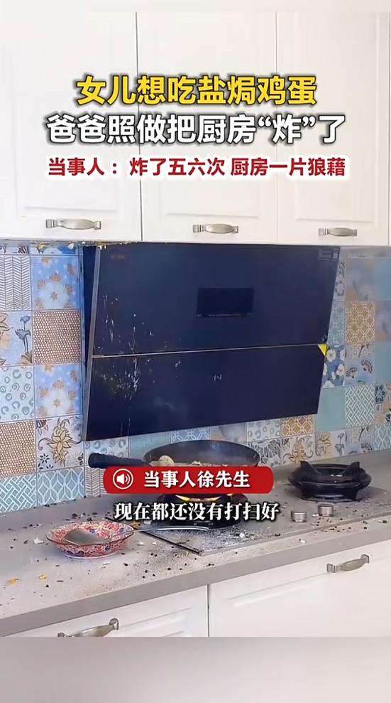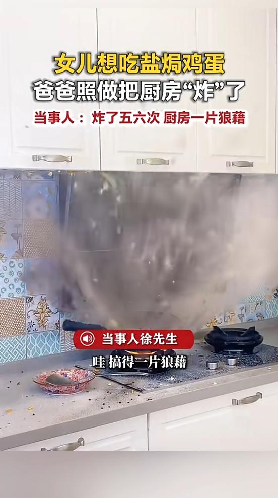 “太吓人了!”近日,云南曲靖,一女孩想吃盐焗鸡蛋,他爸爸知道后,决定给女孩露一手,没想到在操作过程中,听见“砰”的一声巨响,鸡蛋直接从锅里炸开,并且连续爆炸了五六次,搞得厨房一片狼藉,打扫了许久都没清理干净!网友:还好人没事! 最近云南曲靖一件事刷爆了网络,看了真的让人捏一把汗,事情很简单,就是一位徐爸爸,家里女儿看别人吃盐焗鸡蛋,自己也嘴馋了,就跟爸爸说想吃。 徐爸爸虽然自己不会做,但架不住闺女的请求,想着给孩子露一手,就照着网上的教程一步步操作,没成想,好好的盐焗鸡蛋,最后变成了“炸蛋”。 徐爸爸的操作步骤看着也没大问题,就是把鸡蛋埋进烧热的盐里,然后等着鸡蛋焗熟就行,本来以为能顺利做出香喷喷的盐焗鸡蛋,结果等来的不是香味,而是“砰”的一声巨响,锅里的鸡蛋直接炸开了。 他还没反应过来,紧接着第二声、第三声接连响起,前后一共炸了五六次,跟放小鞭炮似的,动静大得吓人,说实话,那种场面真的不敢想,鸡蛋炸开之后,蛋黄蛋清飞得到处都是,好好的厨房瞬间变成了“战场”,乱得一塌糊涂。 徐爸爸事后说,自己也不知道哪一步出了错,事发后打扫了好久,厨房还是没清理干净,想想都头疼,很多网友看了之后,都在评论区说太吓人了,还好徐爸爸和女儿都没事,要是当时离得近,很容易被飞溅的蛋液和蛋壳划伤。 其实不止这一次,之前也有过类似的情况,有人做盐焗鸡蛋或者用微波炉加热鸡蛋,都出现过爆炸的情况,而鸡蛋之所以会炸,核心就是温差太大受热太猛了,鸡蛋本身是个密封的壳,里面装着蛋黄和蛋清,都是液体。 要是温度一下子升得太快,内部的液体就会快速变成蒸汽,压力猛地变大,蛋壳撑不住,自然就会炸开,这和微波炉加热鸡蛋会炸是一个道理。 我猜徐爸爸大概率是没掌握好火候,要么是盐烧得太烫,要么是鸡蛋放进去的时候,冷热温差太大,才导致了连续爆炸,毕竟他也是第一次做,没什么经验,想着满足女儿的心愿,没想到出了这样的小意外。 这件事也给大家提了个醒,以后不管是做盐焗鸡蛋,还是用微波炉加热鸡蛋,都得注意,做盐焗鸡蛋的时候,别把盐烧得太烫,鸡蛋可以先稍微预热一下,或者在蛋壳上敲几个小孔,让蒸汽能排出来。 用微波炉加热鸡蛋,不管生熟,最好都剥壳,或者在蛋壳上戳孔,避免发生危险,总的来说,徐爸爸的心意是好的,就想给女儿做爱吃的东西,虽然出了点小意外,但万幸没人受伤。 也希望大家以后在厨房操作的时候,多注意这些小细节,别因为一时大意,引发不必要的危险,毕竟安全才是最重要的。