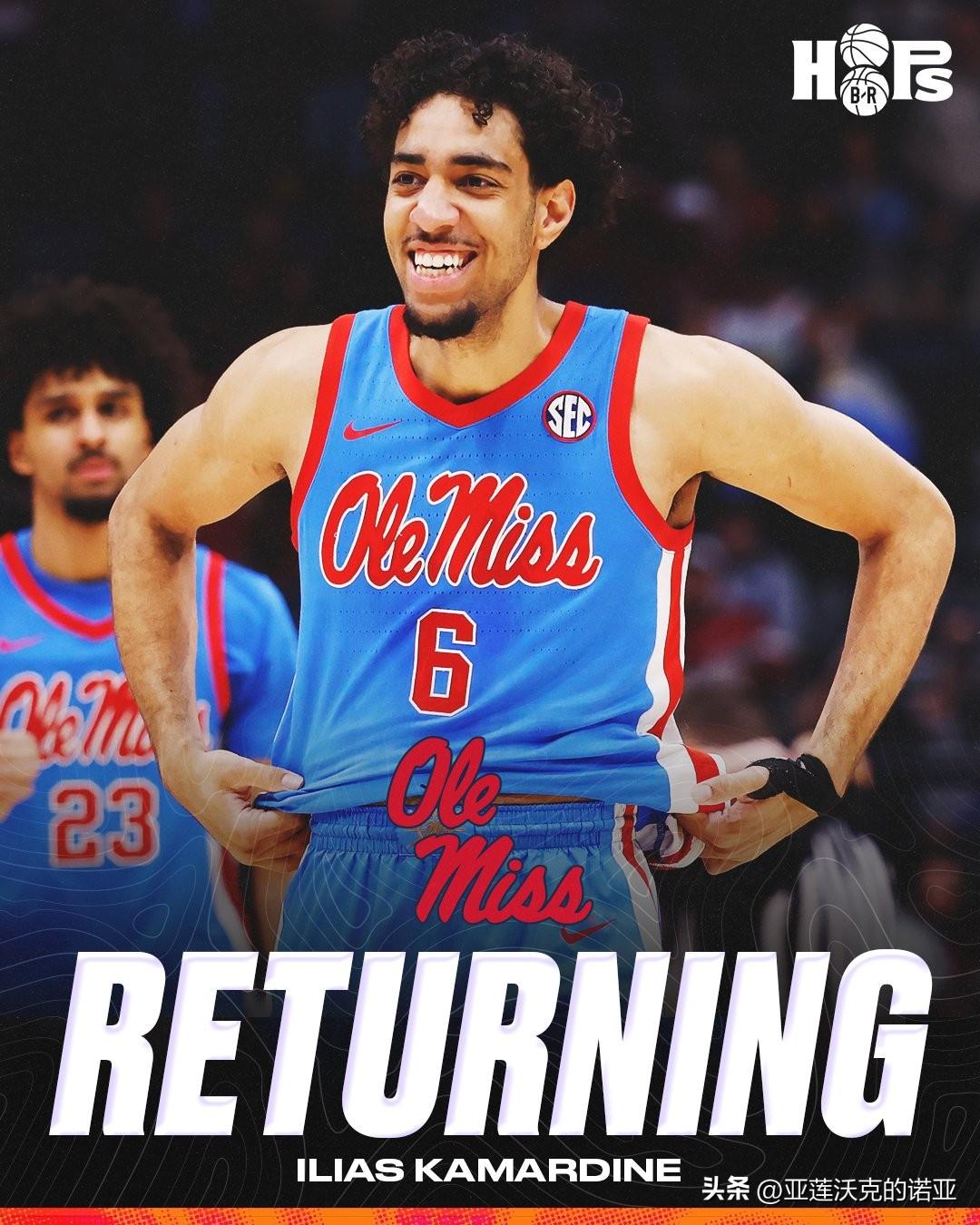 密西西比大学与法国后卫Ilias Kamardine已经达成协议,下赛季将留校继续征战,身高6-4=193,他在二月获准多一年的参赛资格,本赛季场均得到11.3分3.4篮板3.8助攻,据说获得加薪,下赛季他将是球队重要的首发球员。