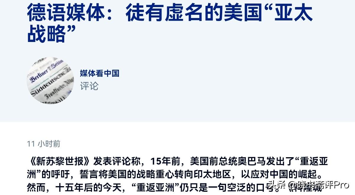 德媒对于美国很失望,美国对华战略完全失败!!4月1日,德媒刊文声称,15年前,美国前总统奥巴马发出了“重返亚洲”的呼吁,誓言将美国的战略重心转向印太地区,以应对中国的崛起。然而,十五年后的今天,“重返亚洲”仍只是一句空泛的口号。而今,美国再次在中东卷入战争,直接影响到了美国在亚太地区的军事部署。 德媒不客气的表示,现在的美国是一个乱了阵脚的超级大国。战争的消耗,让美国军火工业生产精准武器的能力瓶颈越来越暴露,一旦美国的军火库出现空虚,‘重返亚洲’战略的支柱就将发生动摇:即针对中国的军事威慑。伊朗战争已经使盟友对华盛顿的信赖大打折扣,美国的盟友担心,关键时刻他们恐怕还是只能自救。 很显然,从德媒的这一论调来看,德媒对于美国对华战略正陷入的窘境感到越来越失望。德媒的意思是什么呢?说的直白一点,那就是美国推出重返亚洲的战略已经十五年了,原本美国意图以此遏制中国崛起。结果呢?结果美国在遏制中国发展方面看起来越来越走向失败,看不到一点成功的可能性。而如今美国又陷入对伊朗的战争之中,这场战争把美国军事上的窘迫显露的是彻彻底底。 美国在中东要保护自身利益都自顾不暇,现在美国要靠军事震慑远比伊朗强大的中国,又有什么可能呢?德媒的失望,这说明德媒在心里面也承认,美国不得不接受一个强大的中国了,不管美国愿不愿意,美国只能接受中美必须共存的现实。从内心深处来说,西方世界不愿意接受这一点,但他们已经不得不接受。