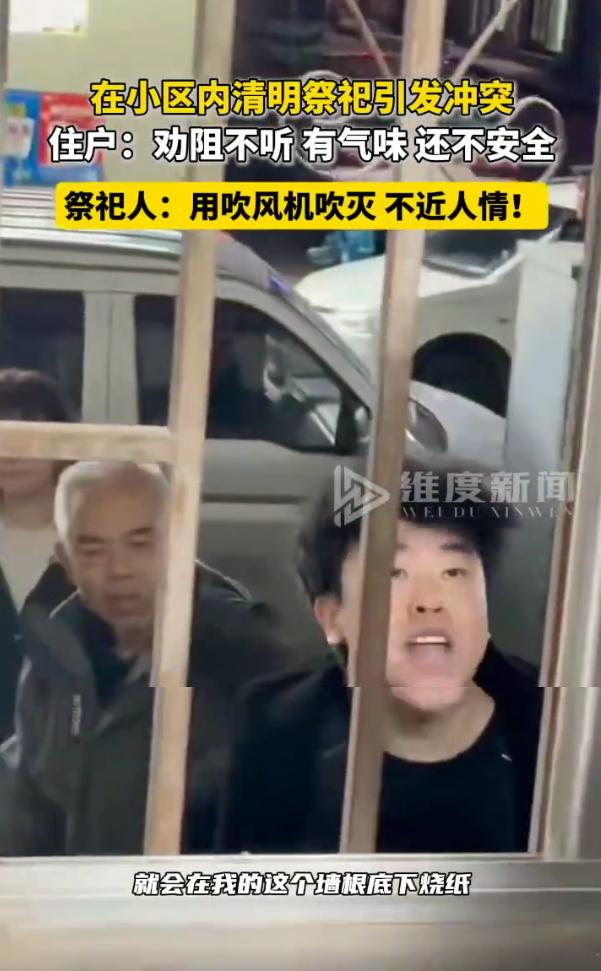 “糊弄鬼呢?”甘肃兰州,一位大爷在小区里烧纸祭祀,可他没有选择路口,而是在别人家的窗根底下,邻居劝阻后,大爷竟然把一家人找来和邻居叫嚣,甚至还觉得邻居是不近人情 视频中,大爷焚烧纸钱的位置,既是别人家的窗下,也是大门口,邻居表示,因为这是老小区,墙壁都有保温泡沫,所以不安全,而且烧纸的味道很难闻,纸也会飘进自己家里,所以才制止大爷烧纸 可大爷呢?人家压根没觉得自个儿理亏。他的逻辑挺清奇:我带了吹风机,烧完了我拿风给吹灭不就完了?言下之意,我已经想得挺周全了,你拦着我,就是你“不近人情” 更绝的还在后头。大爷觉得自己受了委屈,被邻居下了面子,一个电话,把家里老老少少全给招呼来了。一家子人堵在邻居家门口,那架势,不是来道歉的,是来示威的,是来叫嚣的。这哪还是什么烧纸祭祀,分明就是仗着人多,要在小区里论论谁家拳头硬 这一次,网友也是一边倒的支持邻居,先不说大爷烧纸的行为怎么样,但在人家窗户底下祭祀,怎么看都不对 其实细琢磨一下,大爷这种心理,在生活中挺常见的。有些老人,或者说不分老少,总有那么一种习惯——我干的是正经事,我就有“理”。祭祀是正经事吧?所以我烧纸就有理,你们都得让着我。我岁数大,我办事有分寸,你年轻人来指手画脚,就是不懂事。这背后的逻辑,就是把“我的需求”无限放大,把“公共规则”和“他人权益”无限缩小 烧纸祭祀,烧的是纸,敬的是心。但现在有些行为,早就变了味。明明可以去指定的焚烧点,或者至少选个开阔、不碍事的地方,非要图自己方便,在别人家门口又烧又闹。这不是在给先人送钱,这是在给活人添堵。甚至说得难听点,这就是借着祭祀的名头,干着欺负邻居的事