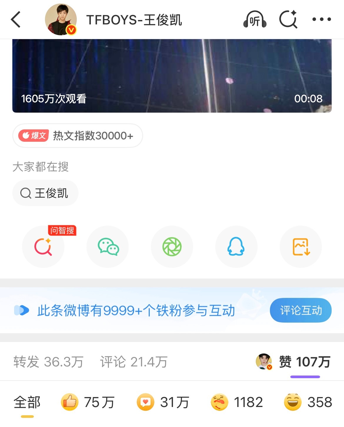 王俊凯 刚发三四天的微博,自然流无号召的前提下外赞75万达成✅《无人乐园》发布不到6天(昨晚)收藏量破75万➕达成✅王俊凯新歌无人乐园