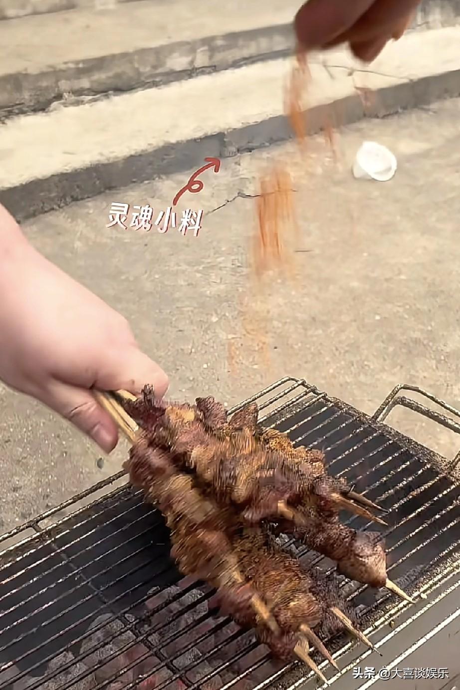 看他撸串也特别溜,还没烤熟的时候就迫不及待了,撒了一堆调料的肉串,他吃的津津有味,典型的吃着碗里看着锅里。