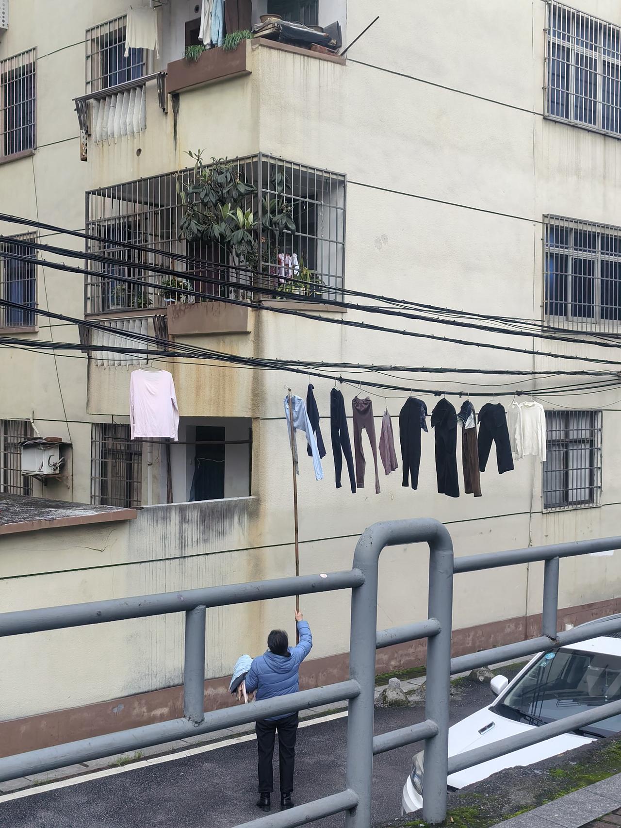 大妈如此凉晒衣服,厉害吧,文明吗? 还有没有更奇葩的,一起曝光看看。