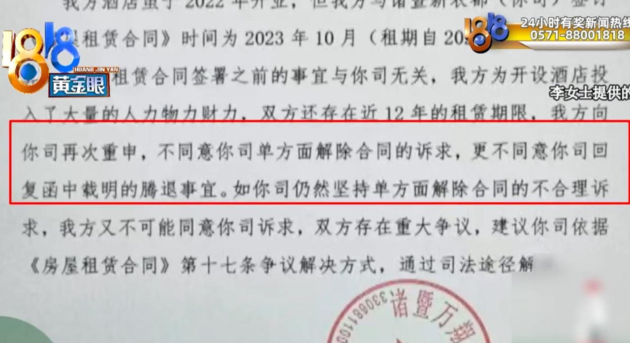 “说强拆就强拆?”浙江诸暨,孙先生东拼西凑投了1200万开了一家“你好酒店”,租期签到了2036年。可大楼换了新房东后,对方为了开高档酒店,竟直接雇了二三十号人破门而入,把100多间房的床、沙发、空调甚至硬装全部砸烂搬空。孙先生女友气得发抖,直呼要让强拆者坐牢。可新房东的反击,却瞬间让这起“强拆案”迎来大反转。网友:“这瓜太大,一千多万的装修说没就没,到底谁在无法无天?” 2022年8月,孙先生看中了诸暨育英路157号新农都大楼的地段,砸了1200万重金,租下了一楼大厅和15至23层的100多间房,加盟开了一家“你好酒店”。 当时的合同是跟第一任房东“新农都实业”签的,租期长达15年,直到2036年才到期,租金半年一交,一次66.6万。酒店生意一度很红火,年营业额能达到几百万。 可好景不长,到了2024年10月29日,这栋大楼的所有权易主了。 “绍兴曼辉企业管理有限公司”花了一个亿,买下了整栋楼。 买卖不破租赁,这本是常识。 但绍兴曼辉的魏总一接手,就盘算着把整栋楼统筹起来,打算引进“希尔顿惠庭”这样的高端品牌。为此,魏总找到孙先生,提出给两三百万让其退租搬走。 孙先生这边一听直接炸了:“我光装修就花了1200万,两三百万让我走人?绝对不可能!”双方谈崩后,李女士(孙先生女友代为发声)控诉,新房东开始使出各种阴招逼退:停掉机器人专用的电梯,甚至断热水;报警器动不动就响,打扰客人休息;大门头也被强行拆除了。 到了2024年12月,酒店已经被折腾得无法正常营业了。 最让李女士崩溃的是,2025年8月9日,在双方还在打官司、法院根本没判决的情况下,新房东竟然叫了二三十个人,强行破门而入。 连续拆了十几天,把酒店里所有的床、沙发、电视、空调等软装全部拉走,甚至连1200万的硬装也砸了个稀巴烂。 李女士气愤地表示:“租金我们交到了2025年2月,现在还没判决,这些东西全都是我的,这种强拆简直是土匪行径!” 面对李女士的血泪控诉,新房东魏总却毫不退让,反手甩出了一堆足以让人惊掉下巴的“猛料”。 魏总表示,自己根本不是什么恶霸强拆,而是在依法行使合同解除权。 魏总指出孙先生方存在四大严重违约行为: 第一,恶意转租甚至私刻公章。孙先生为了转租,居然私刻上一任房东新农都的公章,还在2025年5月1日因此被公安机关拘留了7天。对此李女士辩称,刻的是前房东的章,和新房东无关,且前房东“默认”了。 第二,拒不办理消防验收备案。魏总连续发了三封函催促,孙先生方一直不办,导致整栋楼存在安全隐患,还被住建局和执法局处罚过。 第三,涉黄被查。租赁期间,该区域在2021年至2024年连续发生涉黄事件,被公安机关打击记录在案。李女士则回应:“别人经营涉黄,我们没参与,不知道他们做啥。” 第四,严重违反消防法。2022年至2024年连续被消防机关查处。 基于这些严重违约行为,魏总在2024年12月13日发出了《解除租赁合同通知书》,要求12月25日前腾退,否则屋内物品视为放弃所有权。 魏总强硬表态:“合同约定出现这些违约行为我就可以解除合同,解除通知送达即生效,不需要法院判决!而且根据合同,解约后装修装饰物归我所有。在法院委托第三方做完剩余价值评估后,我拆除的是我自己的装修!” 目前,双方各执一词,这起涉案千万的纠纷已经闹上了法庭。 这起纠纷案情极其复杂,绝非简单的“大房东欺负小租客”。我们来详细剖析一下其中的法律焦点。 “买卖不破租赁”绝非免死金牌。 按《民法典》规定,未经同意私自转租,房东有权解除合同。孙先生私刻公章转租甚至被拘,已构成根本性违约,再加上涉黄与消防违规,新房东确实掌握了单方解除权。 所谓的“前房东默认”在法律上根本站不住脚。 但这绝不意味着新房东可以暴力强拆! 魏总以为解约通知送达即生效,但《民法典》明确规定,对方有异议可诉诸法院。既然孙先生已经起诉,魏总直接带人破门清场就是极其冒险的“私力救济”。 一旦法院认定解约有瑕疵,魏总必将面临天价赔偿。至于上千万的装修,法院也会按违约比例和折旧公平计算,房东休想一句话就“白嫖”。 这事儿说到底,就是一场失控的利益互撕。 租客无视规则违规转租,把千万投资打水漂怨不得人;新房东急于赶人暴力砸店,同样是在违法边缘疯狂试探。在商业法则里,法律底线绝不容践踏,谁企图靠拳头和套路办事,必将遭到法律的最惨烈反噬! 对此,你怎么看?