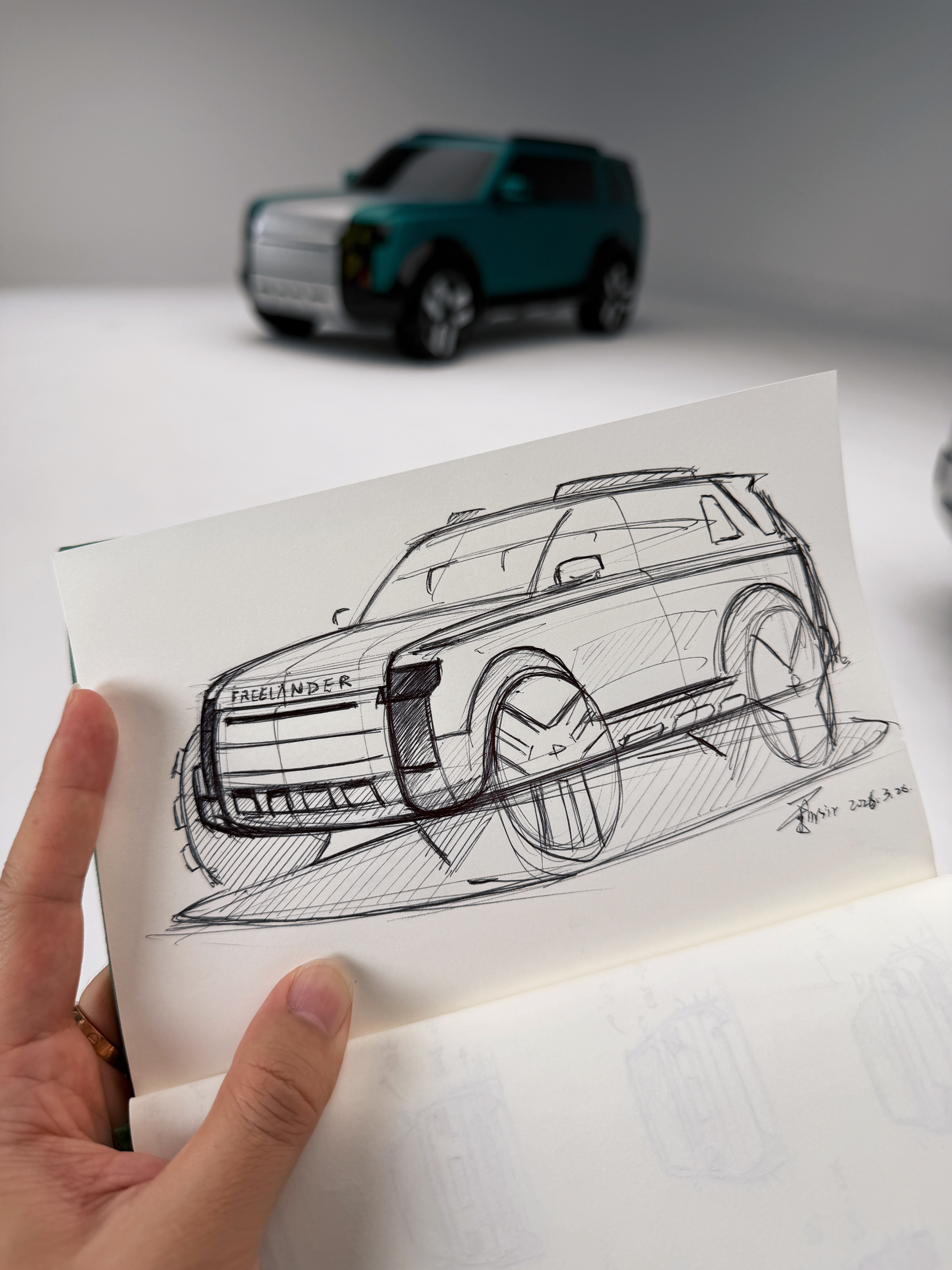 拍freelander神行者全球首秀 时候画的手稿以及拍的实车照新车汽车设计