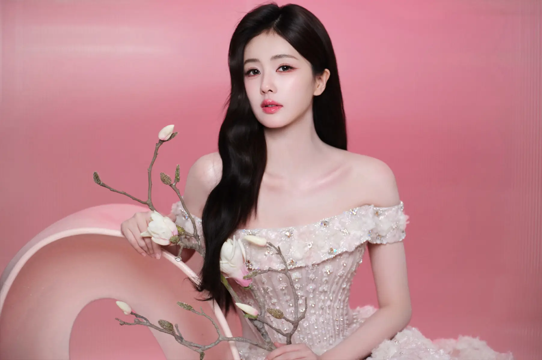 赵今麦白色吊带抹胸长裙造型