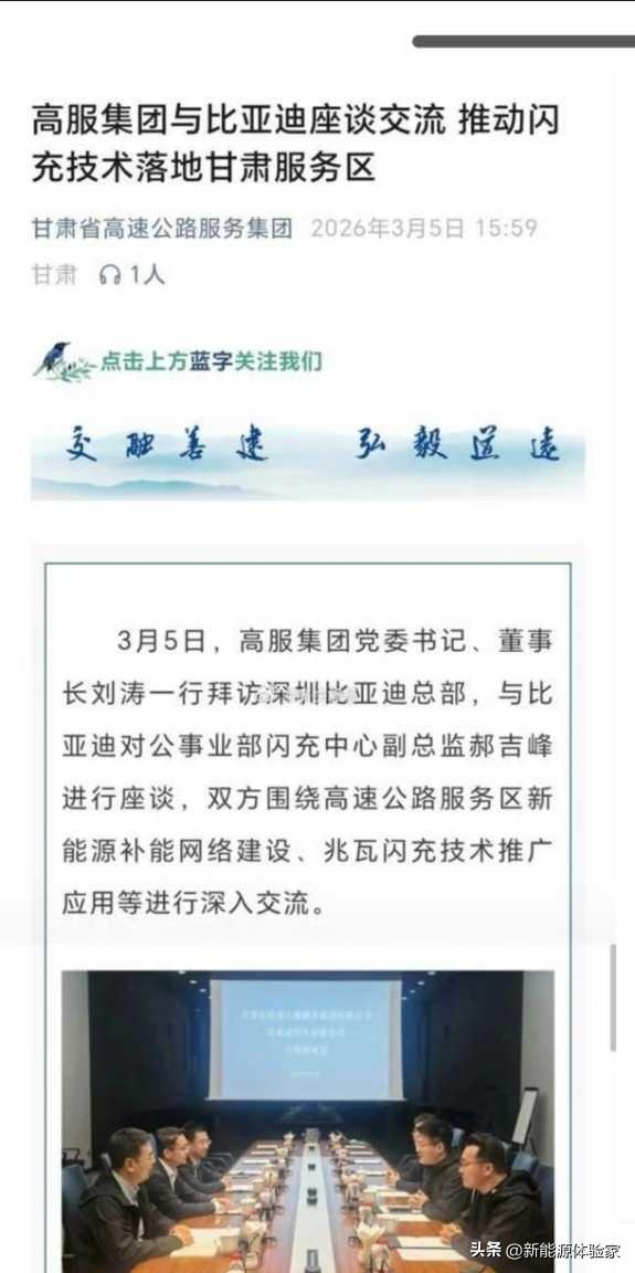 比亚迪闪充高速服务区,从洽谈到上线只需20天! 从2026年3月5日双方座谈对接