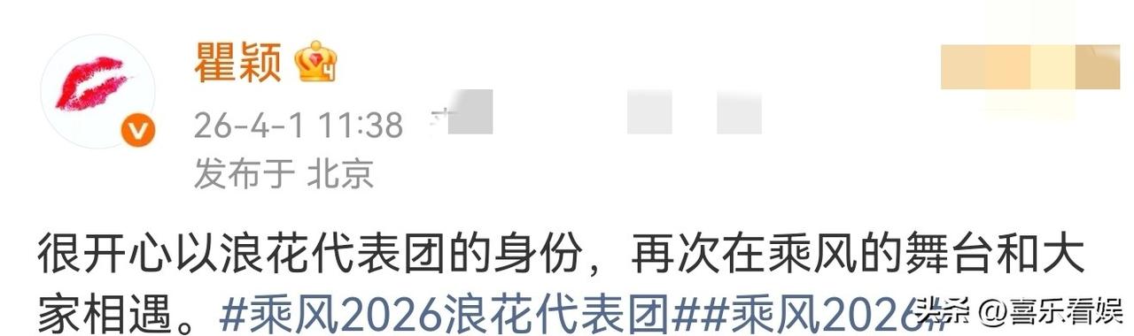 4月1日11:38,瞿颖突然发了条动态,字里行间全是藏不住的开心,说自己要以浪花代表团的身份,再回《乘风2026》的舞台和大家见面了。