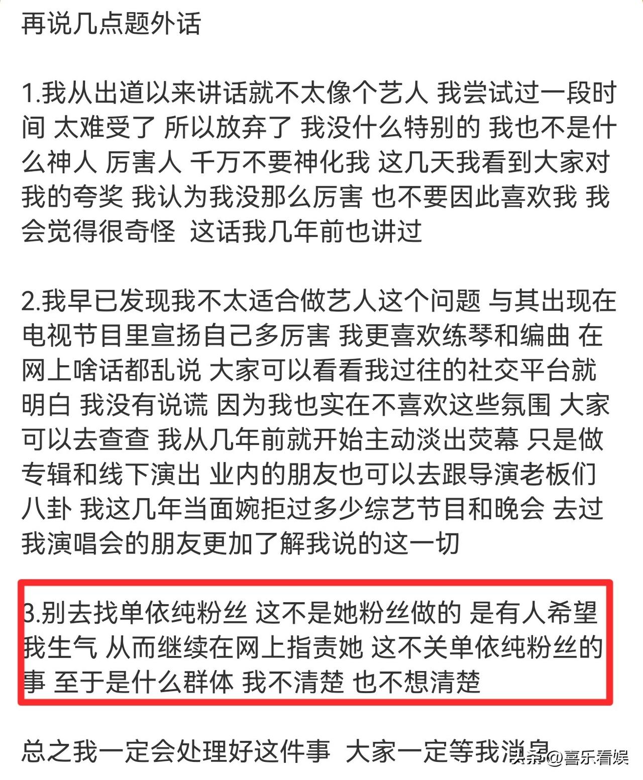 还特意提了一嘴,别去骂单依纯的粉丝,这不是她们干的,是有人故意挑事想让他生气。
