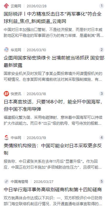无论是中国的导弹,还是中国的航母,日本都不怕,日本怕的只有两点,一是中国的继续加大经济制裁,二是中国把日本在中国内部安插的眼线通通都被发现,如今这两项措施也都有了成效,而且还在继续中。 麻烦看官老爷们右上角点击一下“关注”,既方便您进行讨论和分享,又能给您带来不一样的参与感,感谢您的支持! 最近这段时间,中日之间的博弈算是彻底摆到了台面上。很多人还在盯着咱们的航母编队去了哪儿,或者东风导弹又试射了啥型号,觉得这才是硬碰硬的较量。可实际上,现在让日本那边真正坐立不安的,还真不是这几件大国重器。 说白了,导弹和航母这玩意儿,属于战略底牌,是最后时刻用来定乾坤的,谁也不会轻易掀桌子。日本那边精得很,他们心里跟明镜儿似的,知道只要不踩那条最红的线,这些东西轻易不会落到自己头上。所以他们天天嘴上叫嚣不怕中国的航母,不怕中国的导弹,这话倒也不算全是吹牛,毕竟在他们看来,这些是看得见、摸得着的“明枪”,只要躲着点、防着点,日子还能过。 但他们真正怕的,其实是两把“暗箭”,这俩玩意儿才是真能要了他们命根的。 第一把箭,就是咱们手里攥着的经济王牌。以前咱们讲究和气生财,哪怕有点摩擦,生意照做,买卖照谈。可这回不一样了。去年日本新首相上台后,那一通操作猛如虎,在台海问题上胡说八道,直接触碰了底线。咱们这回没有像以前那样仅仅是打打嘴仗,而是直接动了真格的。 我记得很清楚,就在今年1月初,商务部发了2026年的第一号公告,那文件厚厚一摞,长达168页,里面列出了一千多种两用物项,明确禁止对日本军事用途出口。这还没完,到了2月底,咱们又精准地点了20家日本军工企业的名,像三菱重工、川崎重工这些老牌军火商,直接被列入了出口管制名单。 这一下,日本那边彻底炸锅了。为啥?因为这里面有个要命的东西叫稀土。日本的高端制造业,从电动汽车到精密机床,再到他们心心念念的先进导弹,都离不开中国的稀土。有数据说,日本差不多七成的稀土都得靠咱们供应。咱们这一卡脖子,日本那些军工企业的股价当天就绿了,三菱重工的股价跌了百分之三点多,这还只是明面上的损失。 更深层次的恐慌在于产业链的断裂风险。你想啊,一个日本企业,如果要生产一款先进的雷达或者导弹,突然发现关键的原材料买不到了,或者需要层层审批、签署各种承诺书,保证这些东西不能用于军事。那这生意还怎么做?成本得飙升多少?这不光是企业的事,更是整个日本国家战略的致命伤。日本那边有专家急得直跳脚,说这简直是“火烧眉毛”,如果管制持续下去,日本一年的经济损失可能高达2.6万亿日元,GDP都得跟着往下掉。所以你看,现在日本首相高市早苗的态度变得多快,前段时间还硬得像块石头,现在主动放软话,说愿意对话,想见咱们的领导人。为啥?还不是因为经济上的痛,真的扛不住了。 第二把箭,更是让日本那边后背发凉,那就是咱们国家安全部门持续发力,把他们安插在国内的“眼线”一个接一个地拔掉。 这事儿可比经济制裁更让他们觉得恐慌。情报战,打的就是一个“看不见”。日本这些年在咱们这边安插了多少人,用了多少手段,大家心里都有数。以前可能觉得隐蔽,现在咱们动真格了。就在这个月,国家安全部还公布了一个挺典型的案子,有个重要岗位的离职人员,为了拿绿卡,想带着咱们的涉密材料跑路,结果还没出境,就被国安给逮了个正着。这个案子其实就是一个信号,告诉所有人,咱们的防范网织得有多密。 而且这不仅仅是抓几个人的问题。从去年底到今年,咱们安全部门通过多轮行动,曝光和瓦解了由日本外务省等机构操纵的情报网络。这对于日本来说,打击是致命的。你想啊,他们以前能跟咱们在谈判桌上博弈,很多时候靠的就是信息的优势,知道咱们的底牌,知道咱们的态度。现在好了,那些潜伏多年的“内线”被清除了,情报网被打烂了,他们一下子就变成了“聋子”和“瞎子”。 这就好比两个人下棋,以前日本那边总能偷看到咱们下一步走哪儿,现在不仅看不到了,自己手里的棋谱还被咱们给没收了。这种心理上的压力和战略上的被动,远比军事对峙来得更折磨人。他们不知道咱们下一步要干什么,不知道咱们的底线到底划在哪儿,这种不确定性,才是最可怕的。 咱们回过头来看,这一套组合拳打得非常漂亮。咱们的导弹和航母,是顶在前面的“盾”,让日本不敢轻举妄动;而经济制裁和情报反制,则是两把插进对方软肋的“刀”,让他们实实在在地感受到疼。 现在的局面已经很清楚了。军事上,咱们的战略威慑已经成型,日本再怎么叫嚣“168小时全歼中国海军”,那也只不过是给自己壮胆的梦话,现实是,他们的军事基地和港口全在咱们东风导弹的覆盖之下,真要动手,他们根本扛不住第一波打击。