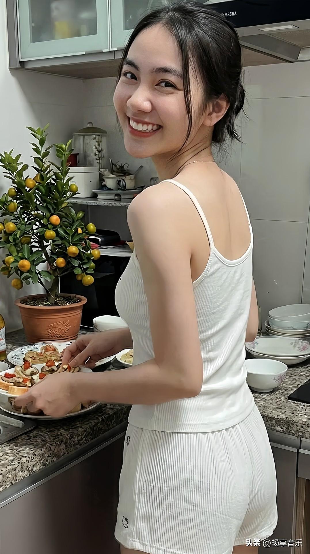 小可爱在厨房认真切着小零食,眉眼弯弯,笑意甜得快要溢出来啦~手机随手拍原创图片分