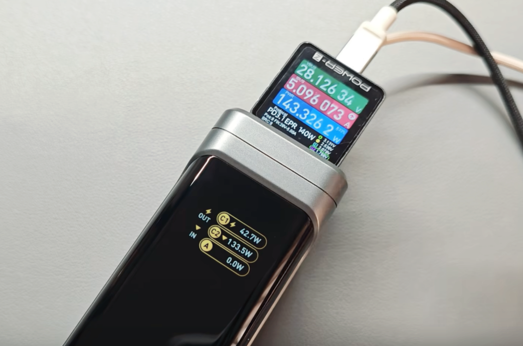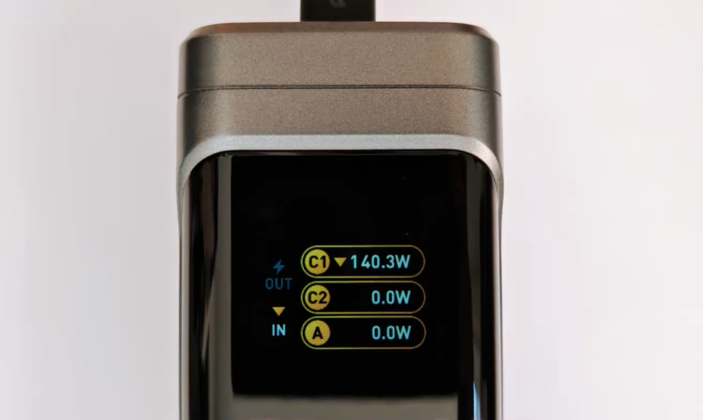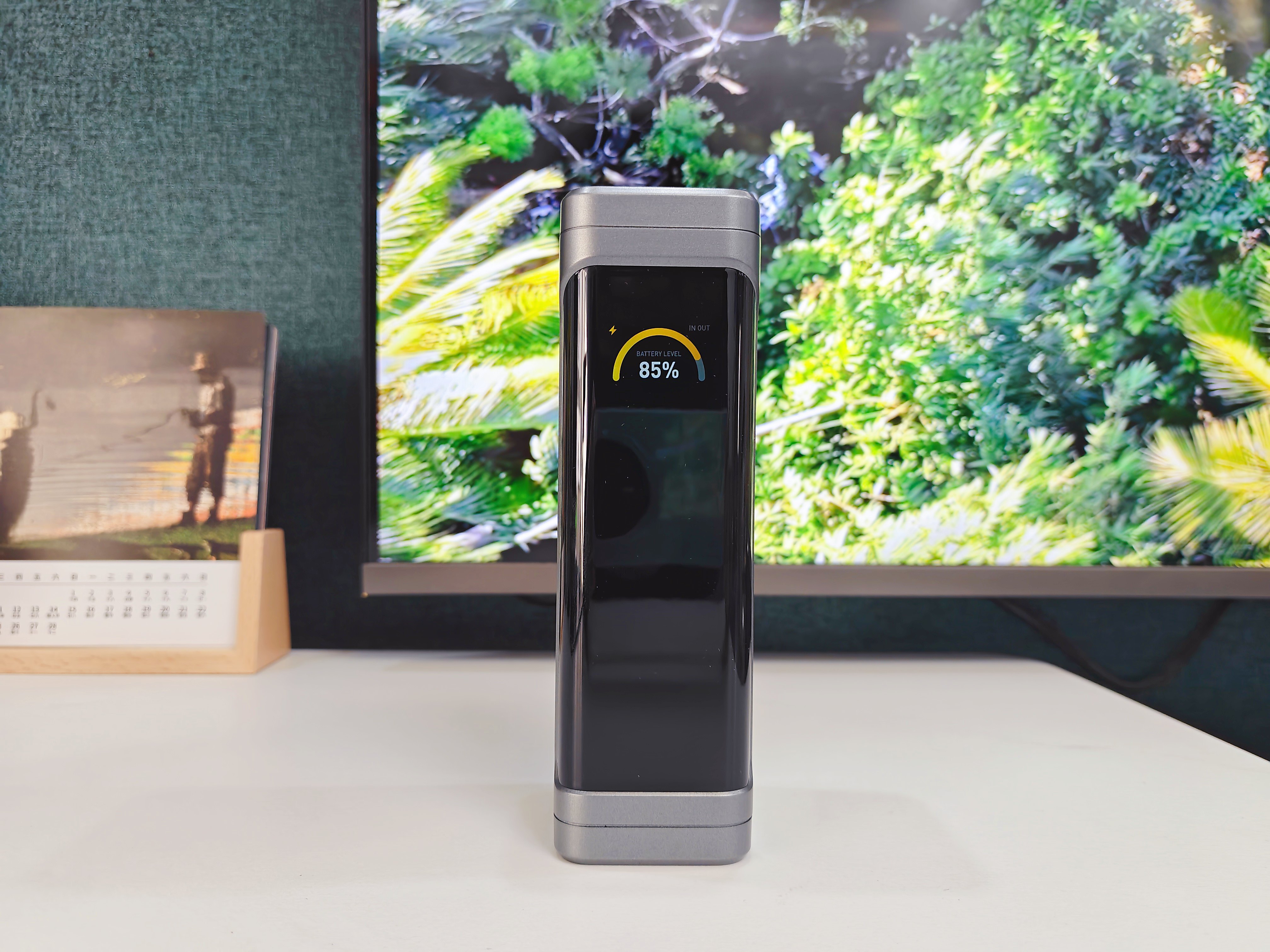 屏幕也是个惊喜。TFT彩屏,功率分配、还剩多少电、充得多快,全都能看见,不像有的充电宝亮几颗灯让你猜。快充动画弹出来的那一刻,甚至有点解压。