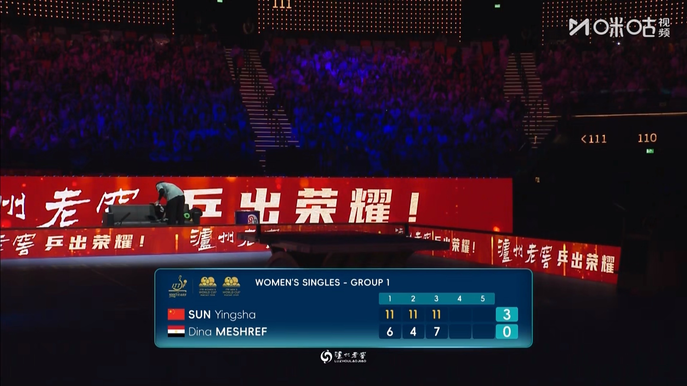 孙颖莎3比0梅谢芙 乒乓球 (11-6,11-4,11-7)晋级澳门世界杯2026 淘汰赛,将作为淘汰赛1号种子