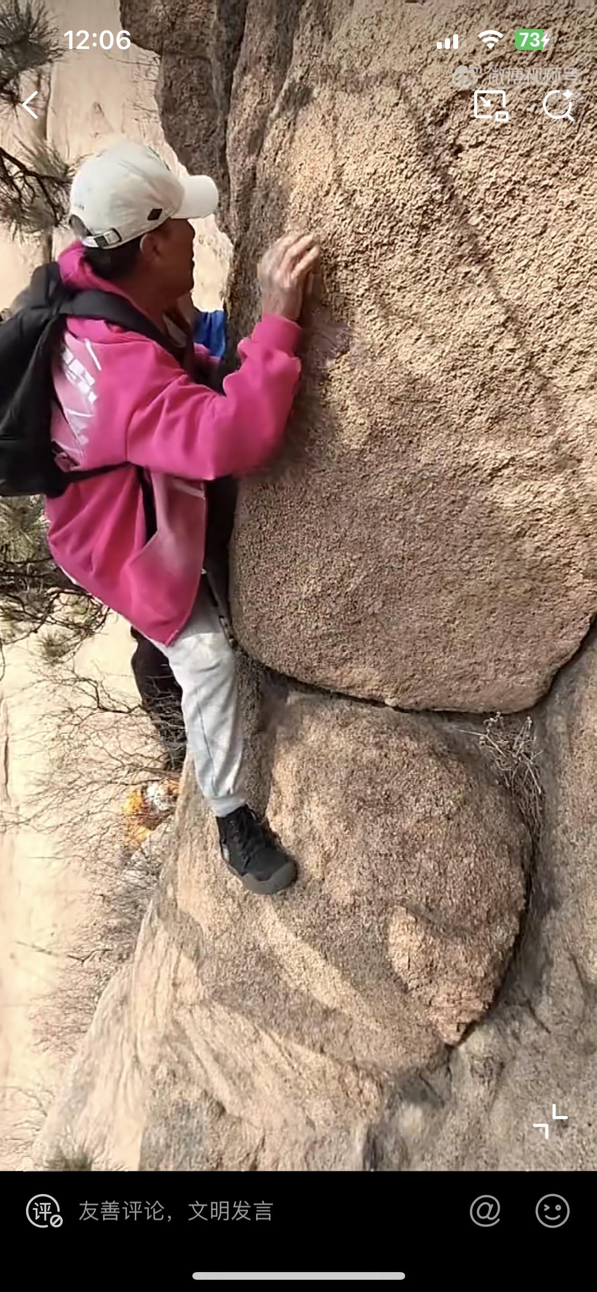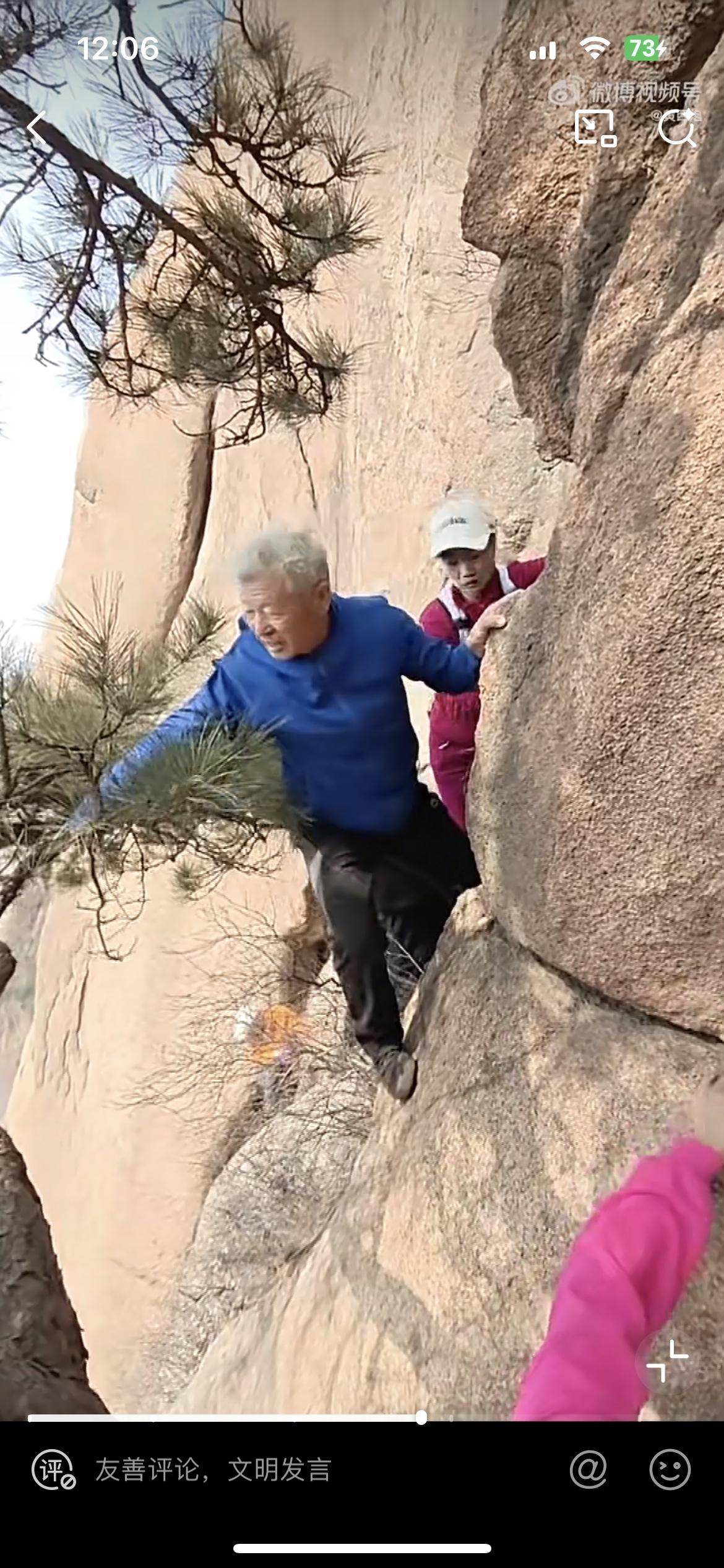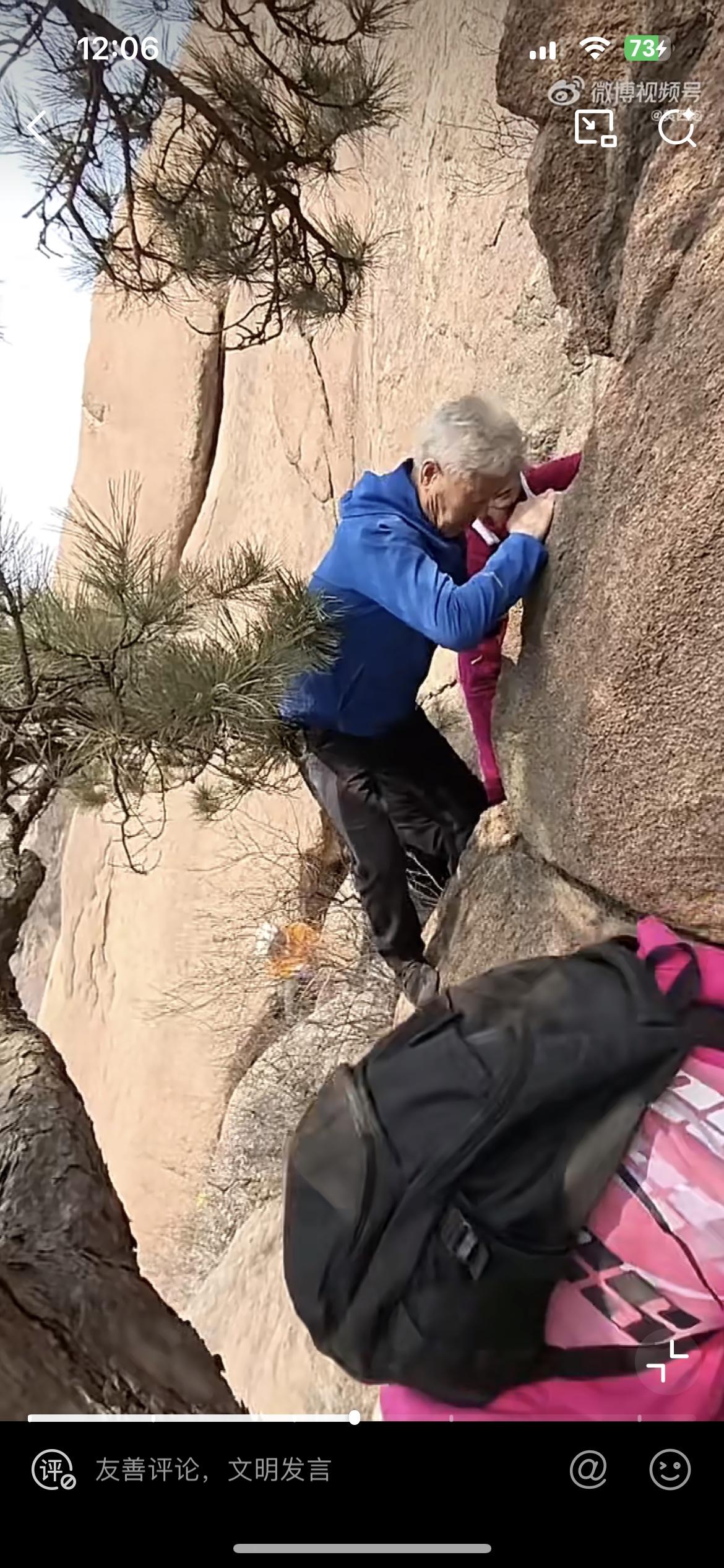 一群老人徒手攀爬悬崖,真是为他们捏一把汗。坐公交地铁都需要人让座,可是他们却有勇气和力量,在没有任何防护的情况下去攀爬这些光秃秃的山,几乎垂直的山崖,可供抓手和落脚的地方都非常少,往下看就是几十米深的沟壑,一失足摔下去可能就万劫不复。但这些老人却个个生龙活虎,毫不畏惧。把这种极限运动当做日常公园的锻炼一样,如履平地,实在令人佩服。看来领高额退休金的老人,武力值就是高。