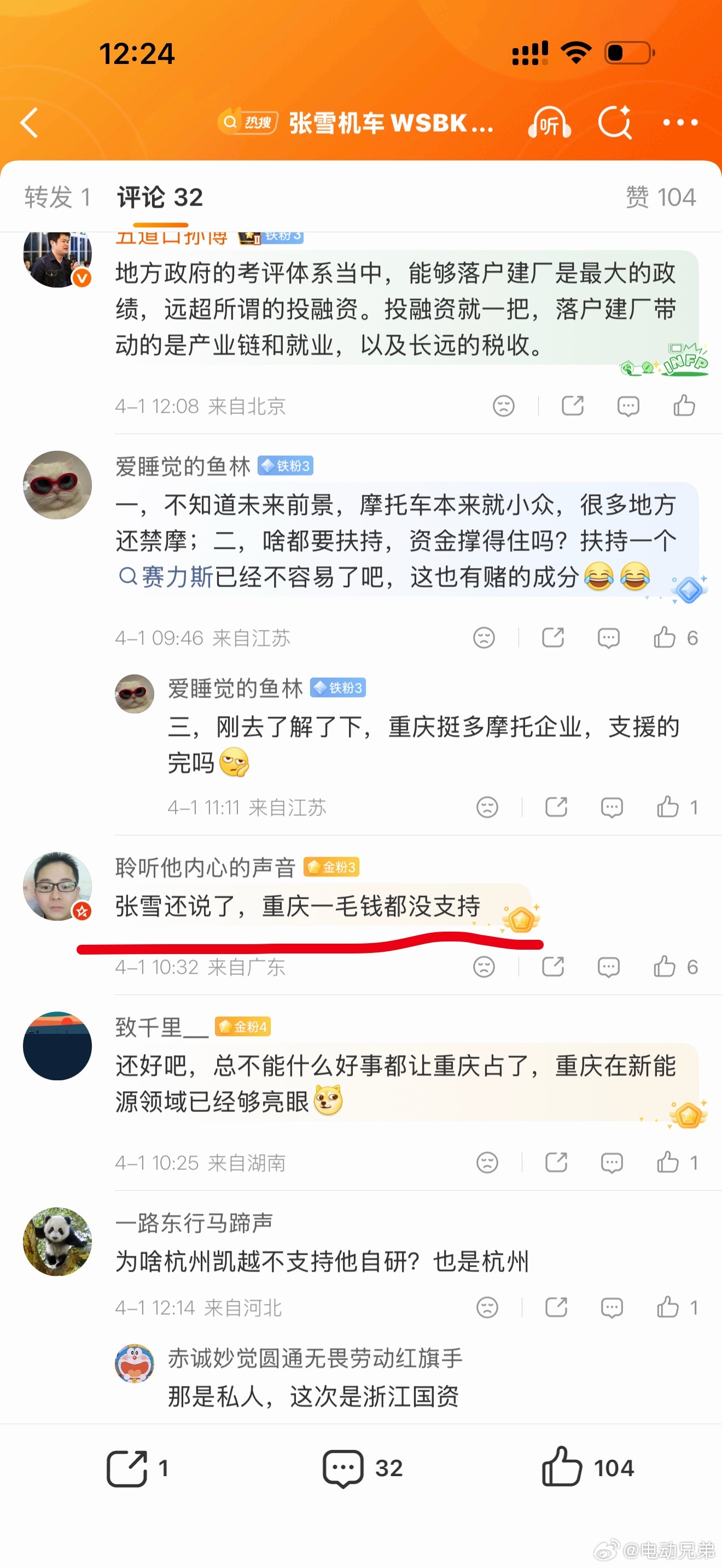 该说不说,我不知道是不是张雪太激动还是采访内容没放全。可能重庆是没直接投资或者支持他们,但重庆的摩托车生态也是实打实的间接赋能了张雪机车呀,这个也没必要给重庆这么大的压力。