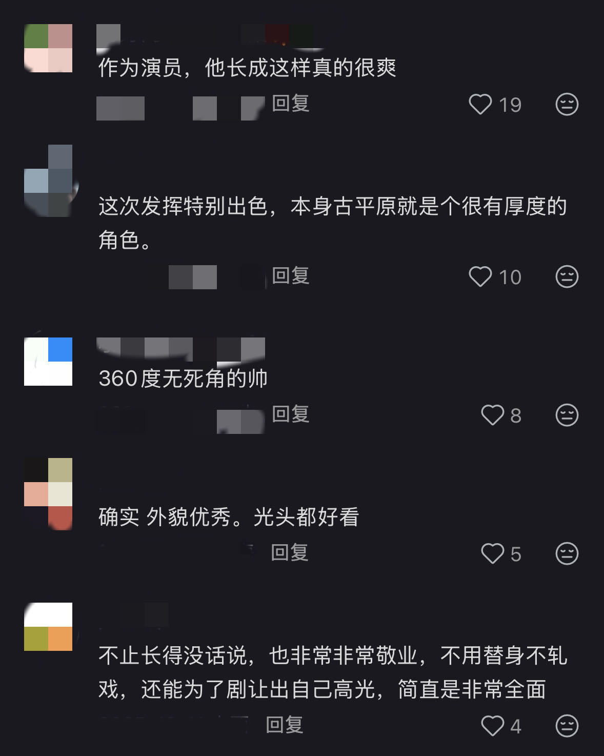 很中肯的评价了作为演员,陈晓 确实有一张很全面的脸 😌不仅仅是五官精致的帅,而且跟角色的适配度也是没话说。冰雨火里面的吴振峰眼神间透出一种肃杀的孤寂感,古平原是有血有肉有赤子之心的徽商,云襄和顾千帆都是潇洒的古装大帅哥,可前者机智敏锐,后者挺拔干劲。每个角色都给他演出不同的层次感,几乎什么类型的角色都能完美驾驭,长相毫无局限性是吧?每次细节把控都很到位,台词总能给人不一样的感觉,赏心悦目又深入人心,今年赶紧把哥的新剧端上来吧好吗😭