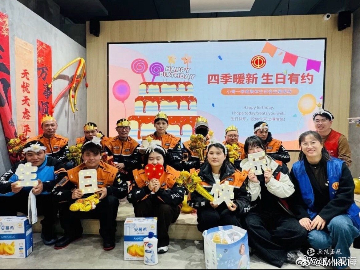 玉环这场集体生日让骑手小哥更有归属感 玉环楚门工会为外卖骑手办集体生日会,贴心开设公益课堂搭建交友平台,暖心关爱新就业群体
