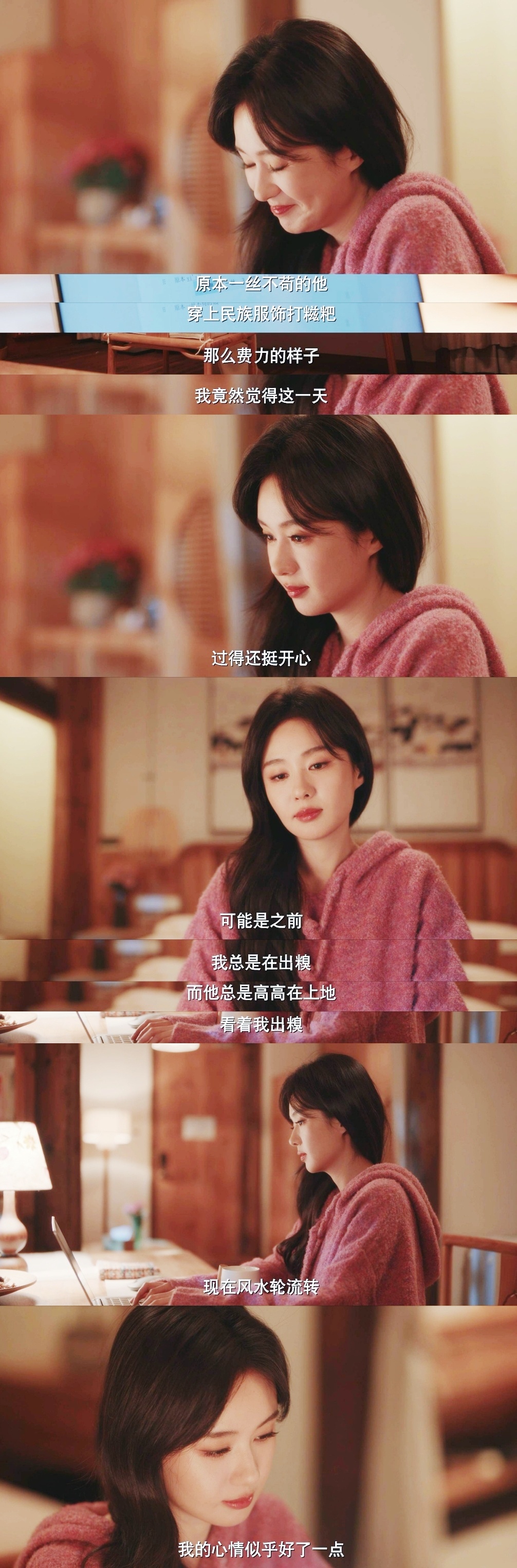 阮喻恼羞成怒直接停更小说,说自己的男主角已经OOC了, 高冷律师许淮颂直接陷入emo,满脑子都是怎么哄回心上人,结果发现自己被阮喻拉黑了哈哈哈。在小镇上的重逢真的太搞笑了,简直史密斯夫妇啊阮喻许淮颂!!阮喻的小说又开始更新了,在她的更新中许淮颂穿着民族服饰打糍粑,看他费力的样子她觉得还挺开心,许淮颂你接下来要努力哦,追妻看得我嘴角一直姨母笑停不下来~