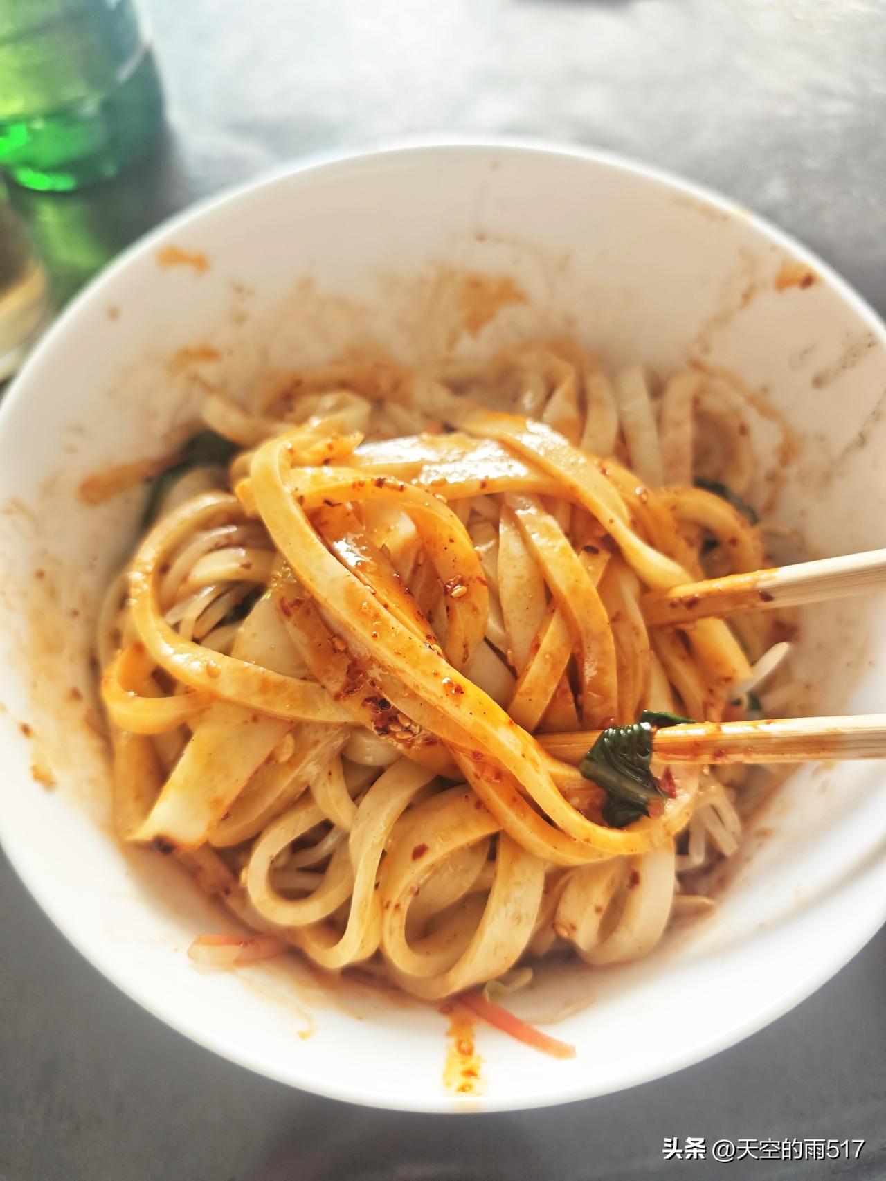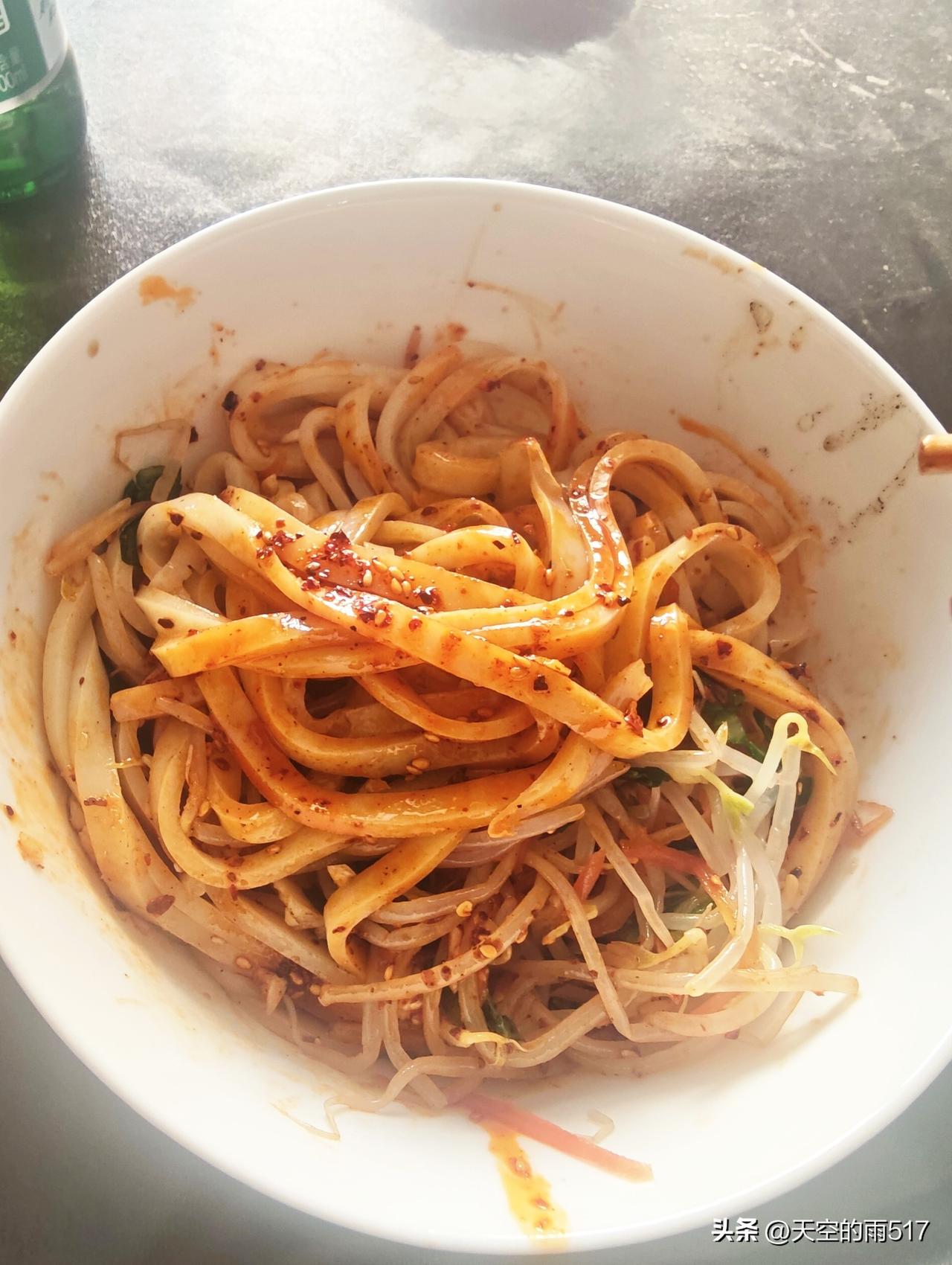 今天天气挺好的,中午老婆在家里自己蒸的凉皮。[耶]