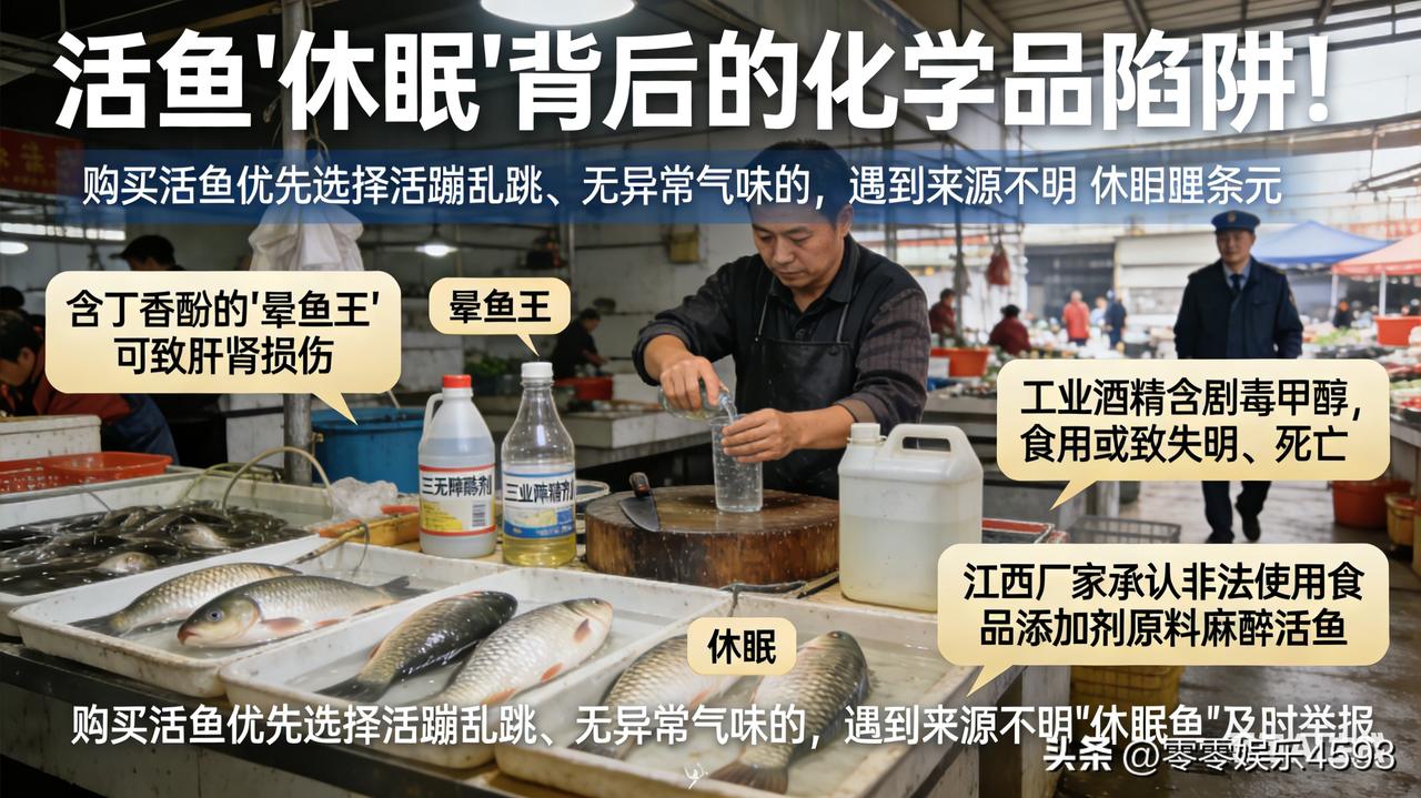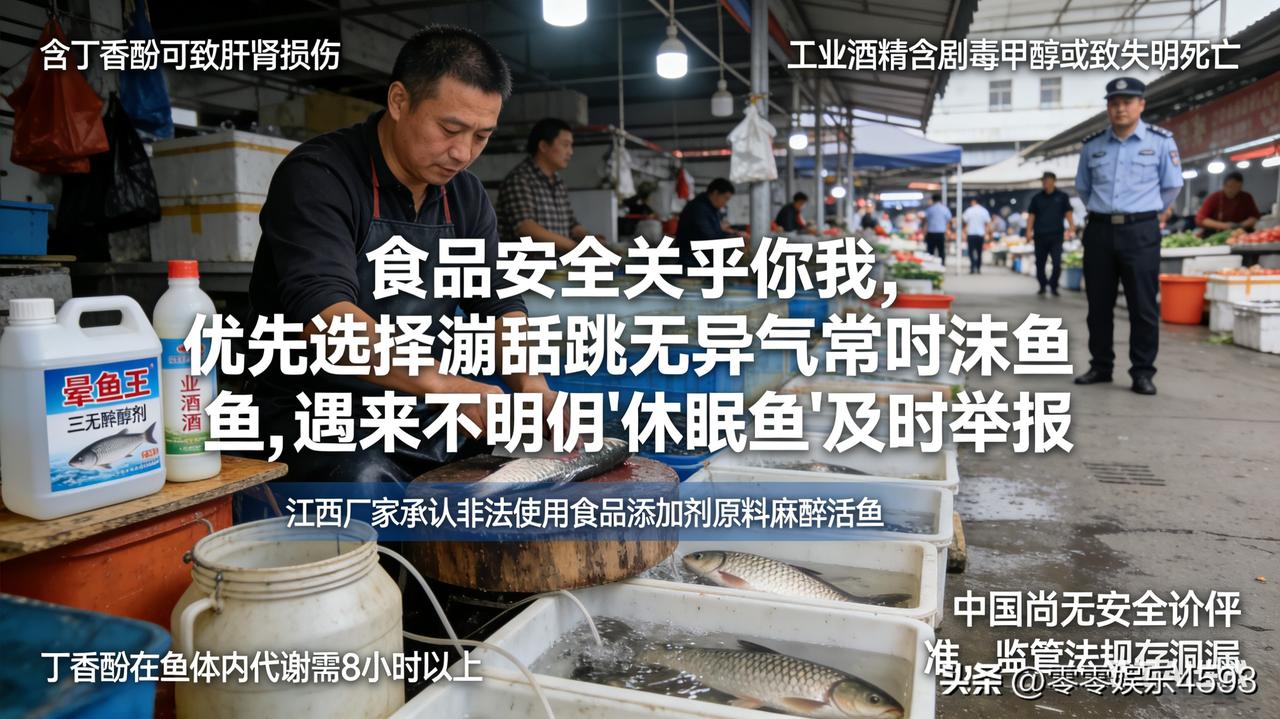 活鱼 “休眠” 背后竟是化学品陷阱!央视曝光多地水产市场用三无麻醉剂甚至工业酒精处理活鱼,商贩为牟利罔顾食品安全底线。重庆、山东等地市场发现,商贩使用含丁香酚的 “晕鱼王”、工业酒精等 “三无” 麻药,前者可致肝肾损伤,后者含剧毒甲醇,食用或致失明、死亡。更令人愤怒的是,市场管理人员对露天摆放的工业酒精、勾兑麻药视而不见,江西厂家竟承认将食品添加剂原料非法用于麻醉活鱼,且丁香酚在鱼体内代谢需 48 小时以上。我国对这类麻醉剂尚无安全评价标准,监管法规存在漏洞。食品安全关乎你我,建议消费者购买活鱼时,优先选择活蹦乱跳、无异常气味的,遇到来源不明 “休眠鱼” 及时举报。严查非法链条、完善法规、强化监管,才能让 “舌尖上的安全” 真正落地。