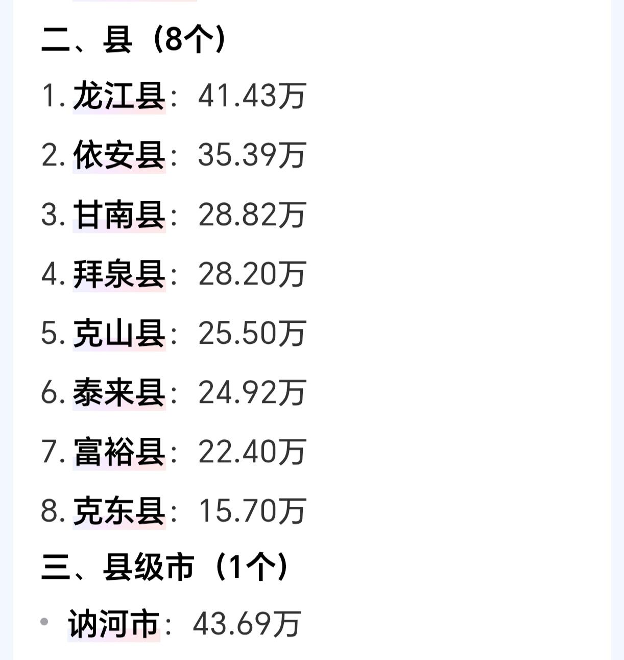 而按照人均GDP排名,富裕县以微弱差异(4.02万)和甘南县(4.04万)并列第二名,与第一名的克东县(5.04万)还是有点差距~