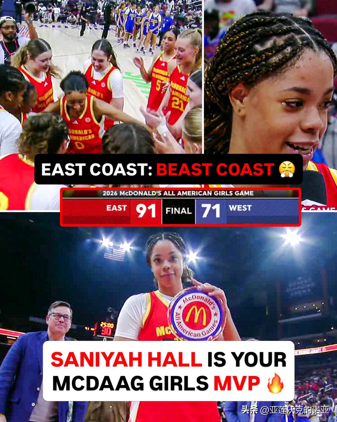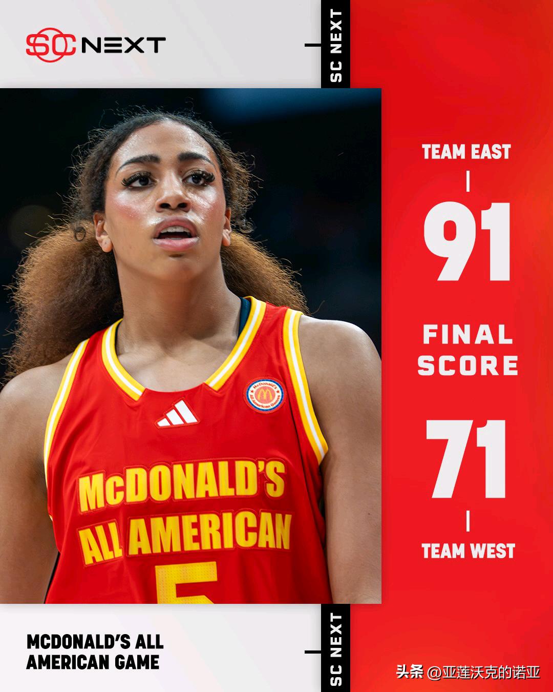 东部在麦当劳全明星赛击败西部球队,USC全美第一Saniyah Hall单场21分5篮板荣获赛事MVP,北卡控卫Kate Harpring在肩部受伤后仍然重返球场展现韧性,NCAA女篮 锦标赛历史上第五次出现四支头号种子球队全部晋级四强的情况,此前分别是在1989年、2012年、2015年和2018年。