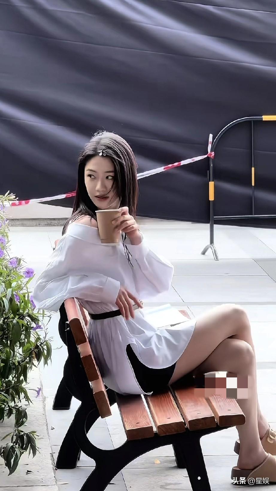 向涵之长椅上喝咖啡。