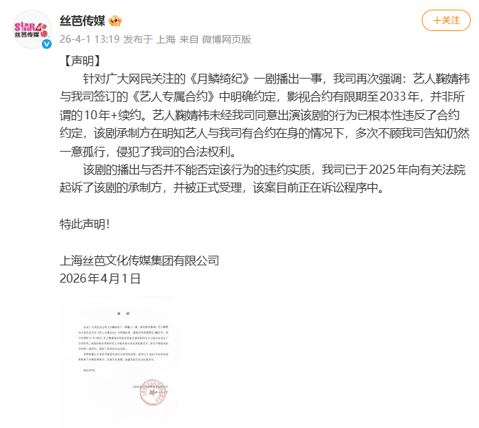 丝芭起诉月鳞绮纪剧方
