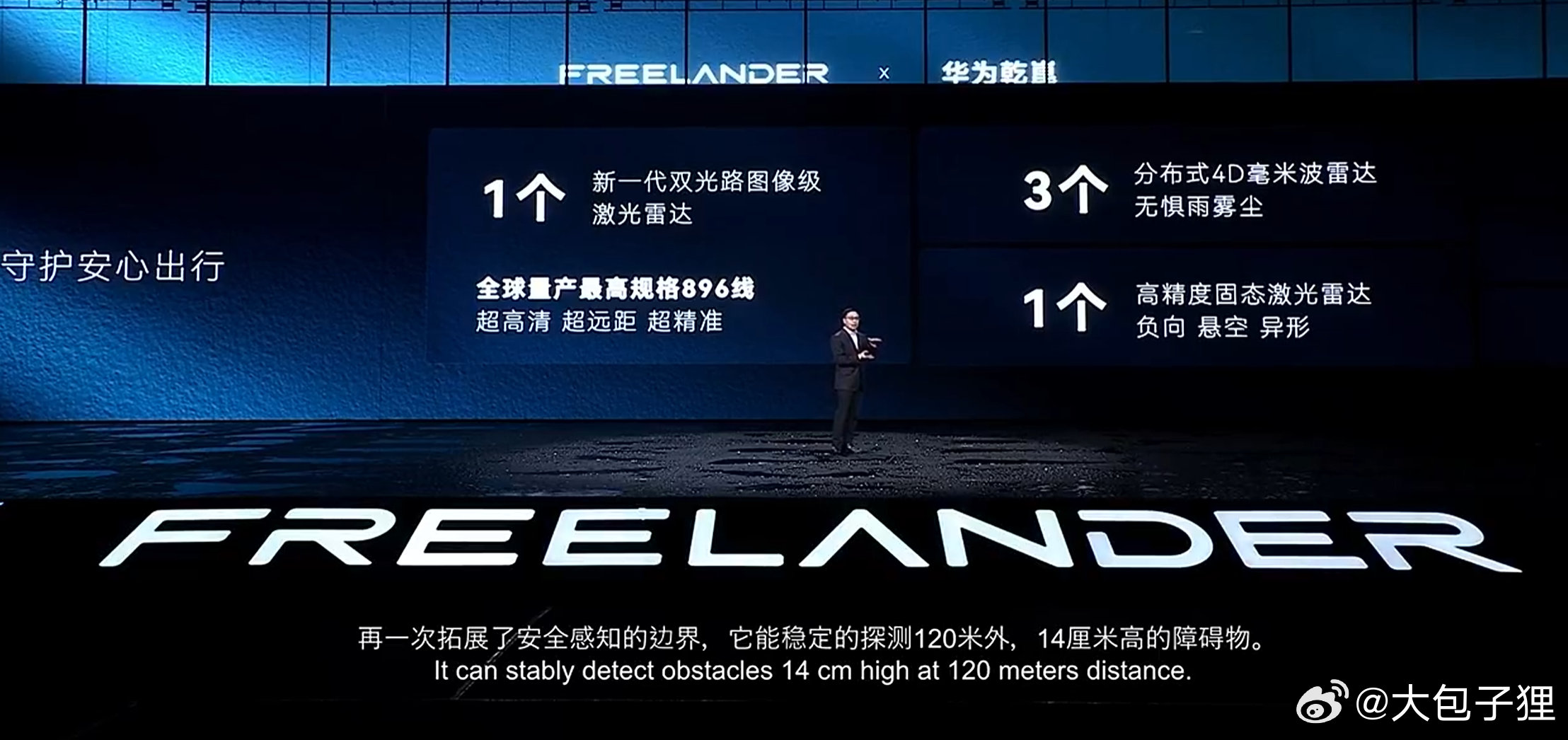 比如那颗全球首款量产的 896 线激光雷达,除了和都市SUV一样在铺装路面,提供了精准的“上帝视角”;但到了荒郊野外,它简直就是“微距摄影师”。14cm 的碎石、隐藏在草丛里的树根,甚至泥泞路面的深度预判,系统都能在毫秒间精准识别。