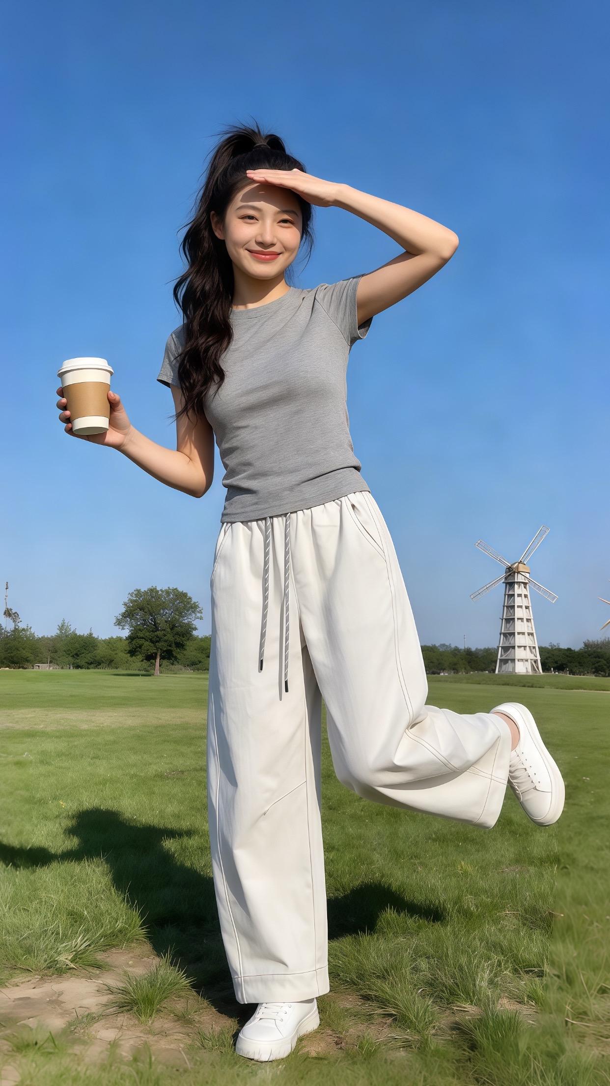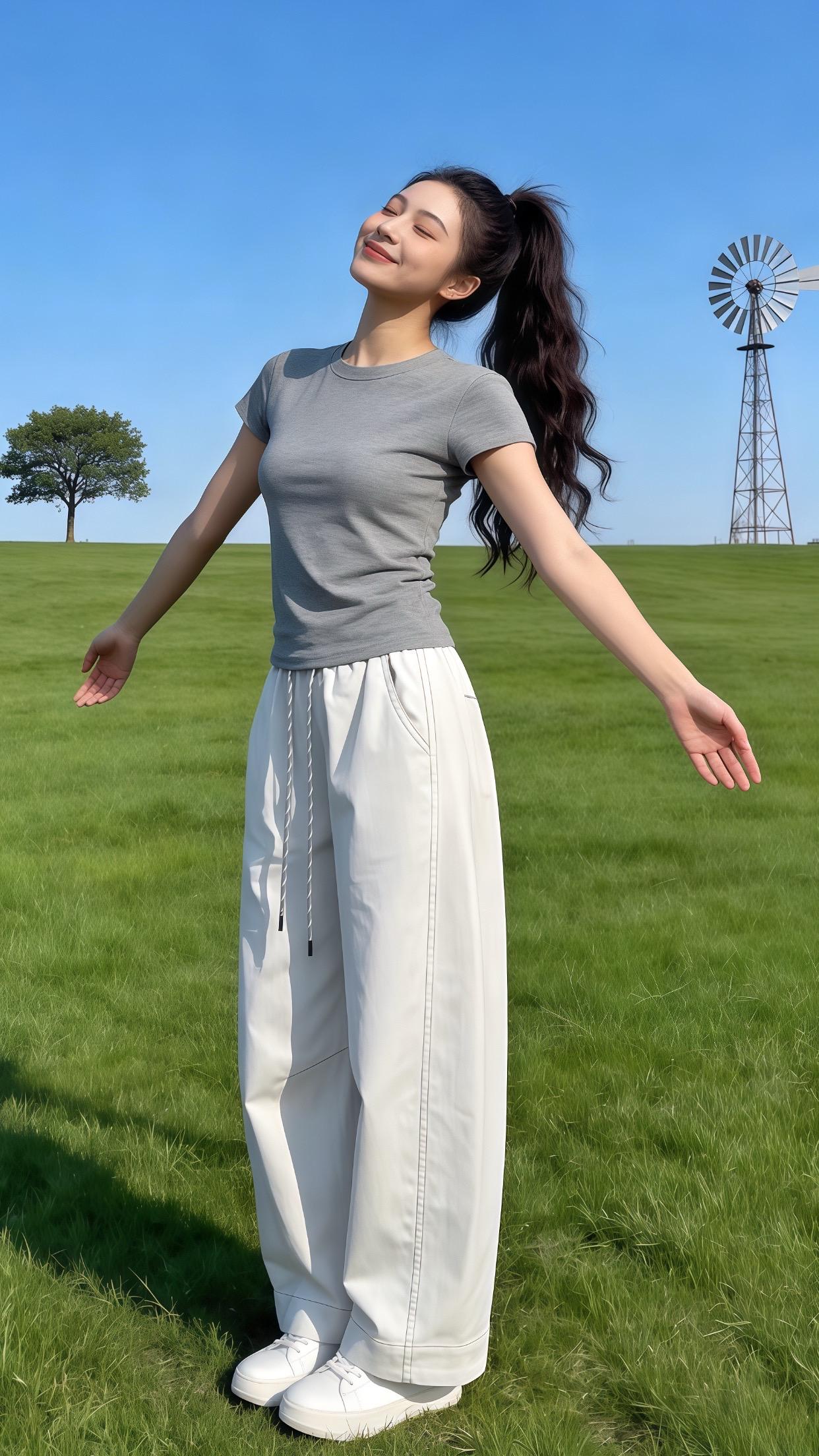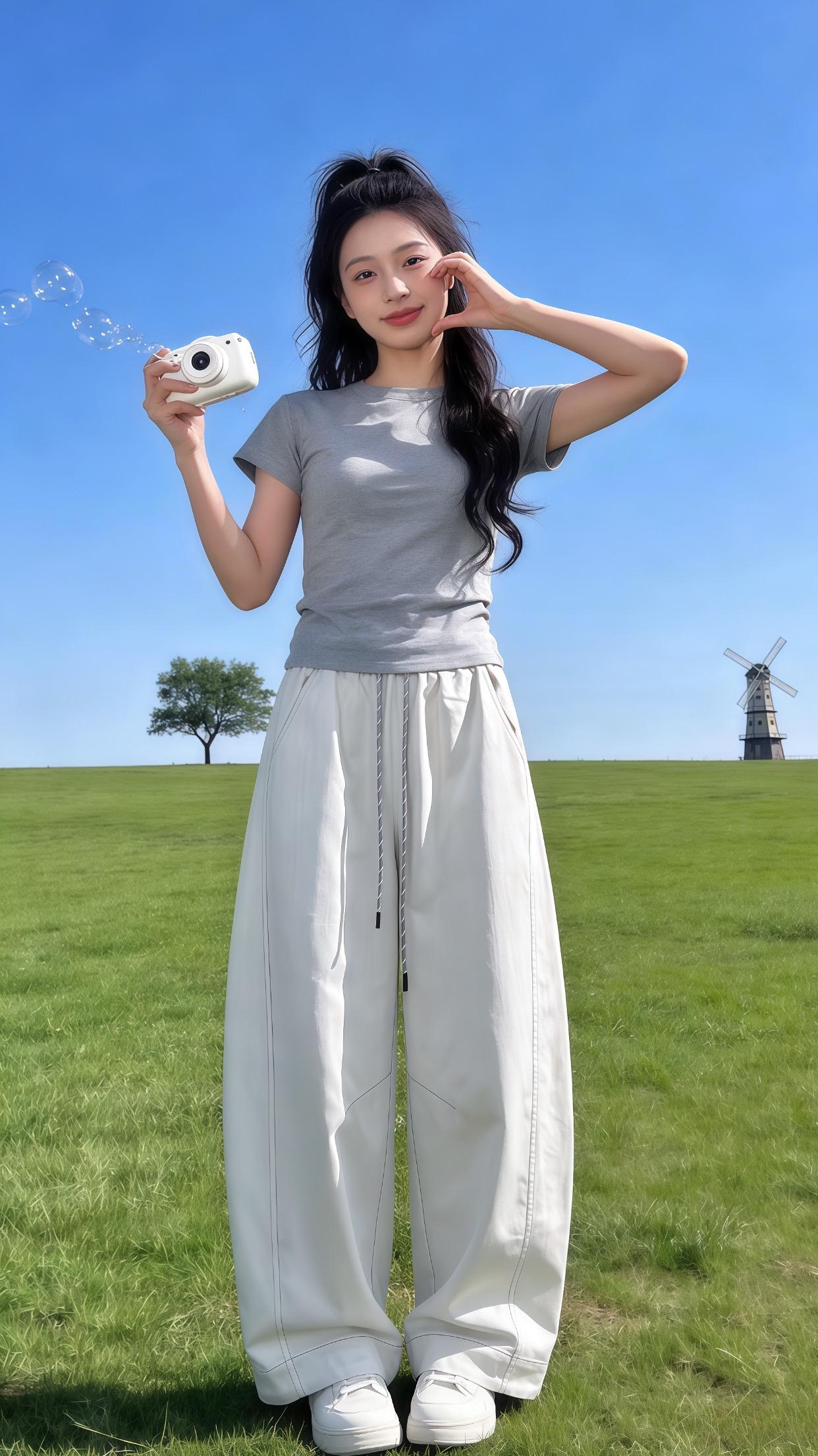 高腰百搭阔腿休闲裤。