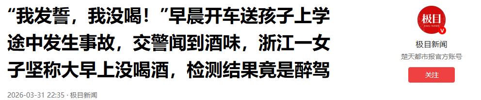 “我发誓,我没喝!”3月26日,浙江一女子早晨开车送孩子上学途中发生事故,交警闻到酒味,女子坚称大早上没喝酒,检测结果竟是醉驾,原来女子头天晚上在娘家喝的一整瓶红酒,女子以为已经过了七八个小时就没事儿了,这下悲剧了! 一份血液酒精检测报告,让浙江女子瞬间崩溃落泪。她对着交警反复辩解,语气笃定又急切,嘴里一遍遍说着“我发誓,我没喝”,可报告上的数字,却狠狠打了她的脸,也让她为自己的侥幸心理,付出了沉重代价。 事件曝光后,网友们的讨论瞬间炸开,热度很快攀升。有人惋惜不已,觉得女子太粗心,不懂隔夜酒的危害;也有人直言侥幸心理害死人,哪怕隔了七八个小时,酒精也未必能完全代谢,送娃上学更不该掉以轻心。 3月26日清晨,天刚蒙蒙亮,浙江某地的街道上已有零星车辆通行。女子早早起床,洗漱完毕后,驾车带着孩子出门,打算送孩子去学校,再赶去上班,全程没觉得自己有任何异常,只想着尽快送娃到校。 行驶到一处路口时,意外突然发生。女子驾车直行,与一辆左转的车辆发生轻微碰撞,两辆车都有不同程度的刮擦,没有人员受伤,但现场还是吸引了过往路人的注意,有人第一时间拨打了报警电话。 交警很快赶到现场,一边查看事故情况,一边核对双方驾驶员信息。靠近女子驾驶座时,交警敏锐地闻到了一股淡淡的酒气,顺着气味望去,女子面色微红,眼神也有些飘忽,当即对她提出酒精检测的要求。 女子听到要检测,瞬间急了,连忙摆手否认,语气十分坚定,坚称自己大早上根本没喝酒,不可能酒驾。她反复解释,自己全程清醒,只是赶时间送孩子,身上的味道或许是别的东西,绝非酒精。 交警没有听信她的辩解,按照流程,先对她进行呼气酒精检测,检测结果显示,她的酒精含量远超醉驾标准,随后又将她带去医院,提取血液样本送检,进一步确认检测结果,全程规范有序。 面对初步检测结果,女子终于松了口,道出了真相。原来前一天晚上,她回娘家吃饭,一时高兴,喝了一整瓶红酒,直到深夜才叫代驾回家,睡前还帮孩子洗漱,觉得自己状态很好,没有任何不适。 她以为,从喝酒到第二天清晨送孩子,已经过去了七八个小时,酒精早就被身体代谢完了,不会影响驾驶,也不会有任何问题,所以才放心驾车出门,压根没考虑过隔夜酒也会导致醉驾。 很快,血液酒精检测结果正式出来,女子体内酒精含量达到192mg/100ml,远超80mg/100ml的醉驾标准,属于严重醉酒驾驶机动车,已构成危险驾驶罪,等待她的将是法律的制裁。 据悉,按照最新的相关规定,醉酒驾驶机动车,不仅会被吊销驾驶证,还会面临拘役和罚金,且5年内不得重新考取驾驶证,女子的行为,不仅影响了自己,也给孩子带来了不良影响。 孩子被随后赶来的家人接走,得知母亲的情况后,十分害怕。女子看着孩子离去的背影,又看着检测报告,满心悔恨,却早已无济于事,一时的侥幸,终究酿成了无法挽回的悲剧。 随着事件发酵,更多网友加入讨论,有人分享自己的经历,提醒大家隔夜酒的危害,也有人提醒,酒后无论间隔多久,只要酒精未代谢完,都不能驾车,安全永远是第一位的。 对此,你们有什么看法,欢迎评论留言~