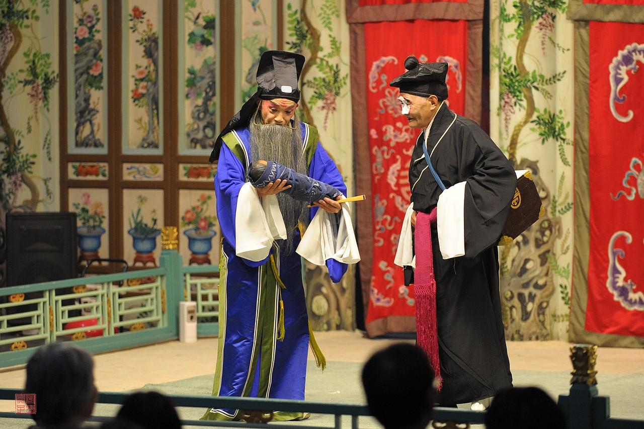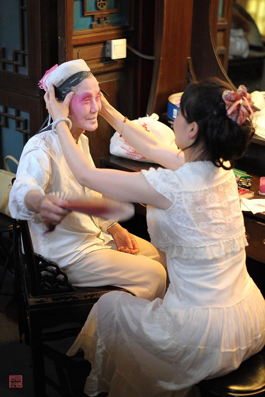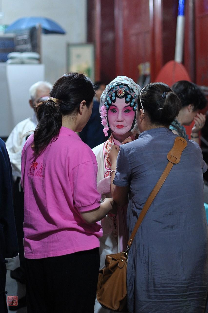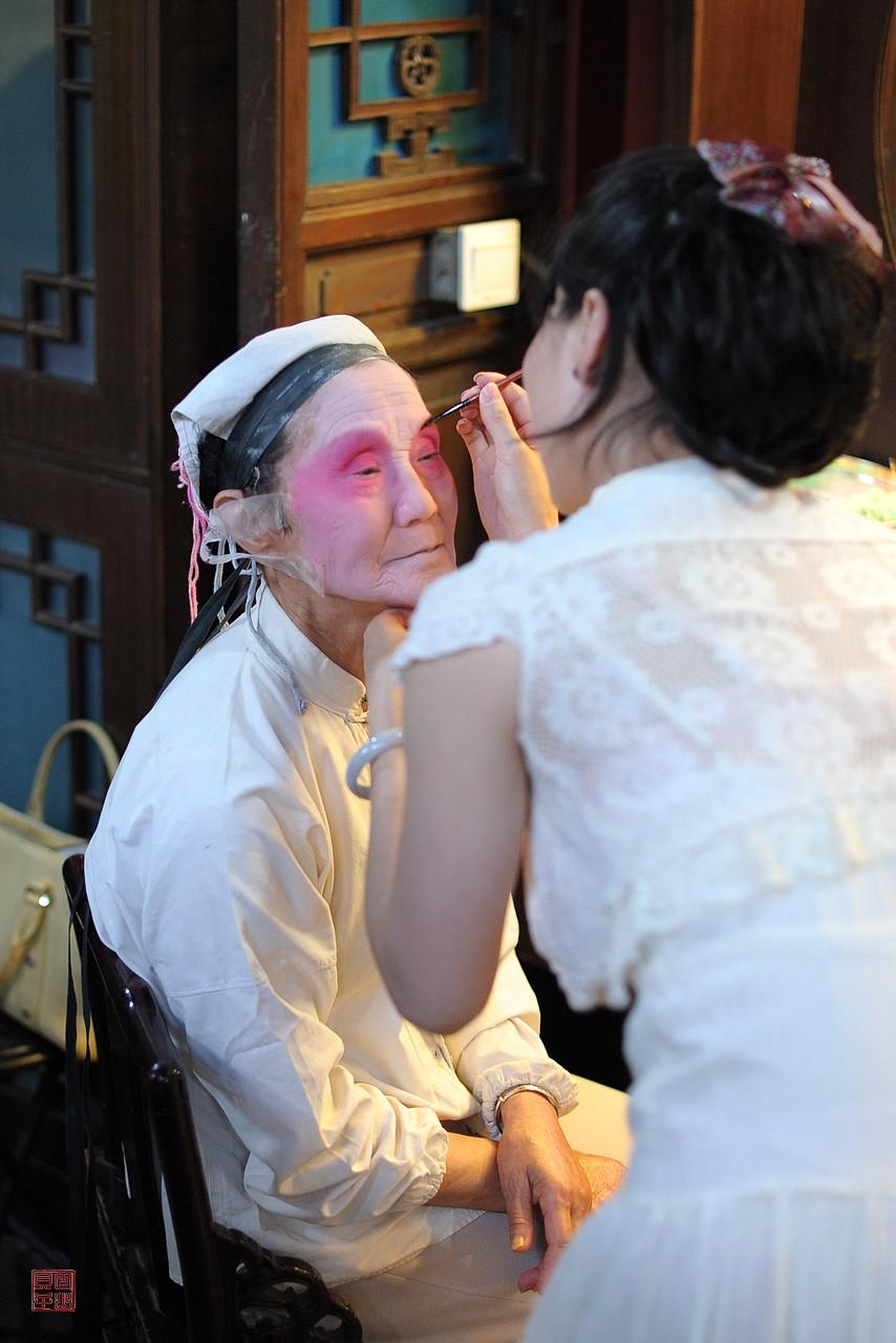 今年3月7日和11日,昆曲名家张继霖和柳继雁先后谢世,享年90岁和92岁,他们是一对昆曲伉俪。我想起15年前,也就是2011年6月,我在北京拍摄过苏州昆剧传习所继、承字辈老艺术家们的示范演出。他们两位分别出演了角色,其中柳继雁在《西楼记·楼会》中扮演穆素徽,当时她76岁,是参演的演员中年纪最大的;张继霖在《双珠记·卖子》中扮演王安,这应该不是他们最后一次演出,但是当时的记录也弥足珍贵。演出的场所是恭王府戏台,我记得当时天气非常炎热,艺术家们熟练、平静地完成演出,很让人感动。他们虽然年纪很大,但是可以用神完气足来形容。我当时拍摄了艺术家们舞台上的风采,还有顾卫英给柳继雁扮戏的瞬间。图9、图10左1、图11右1是张继霖先生。