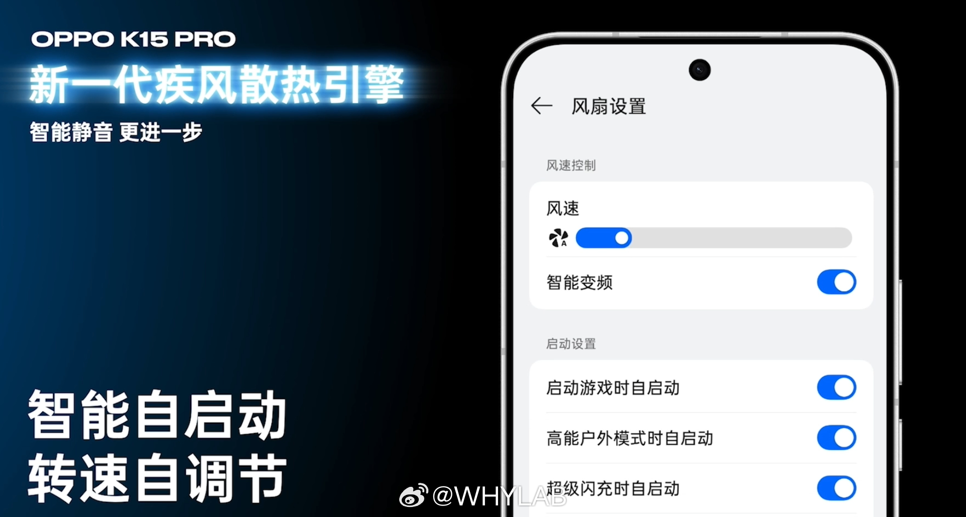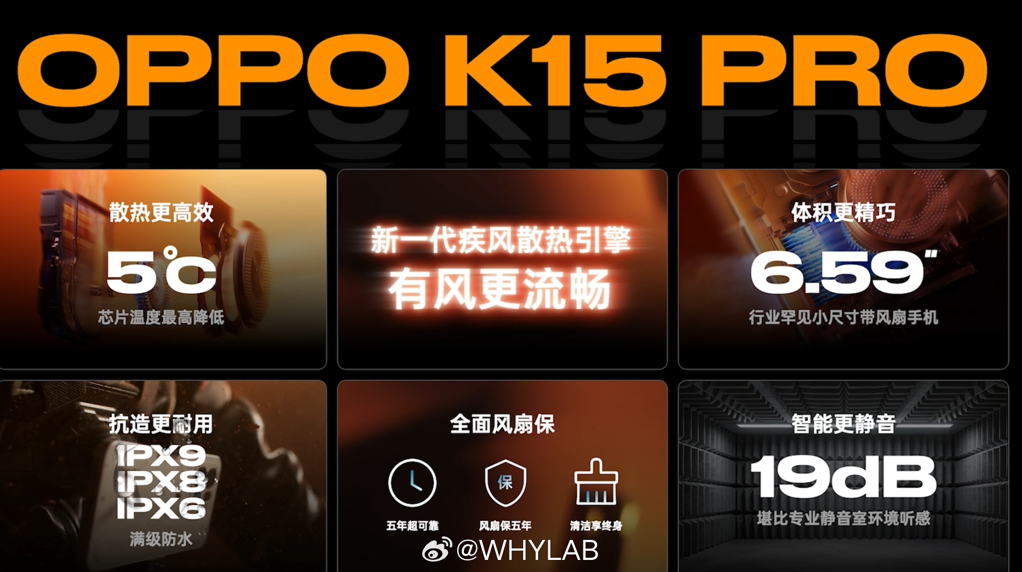 开启疾风散热引擎后,OPPO K15 Pro 在 30°C 户外强光下,能实现 4K 60 帧的视频持续录制不卡顿,风扇支持智能自启动,风扇支持 IPX9 防水,整机通过 IP69 满级防尘防水。