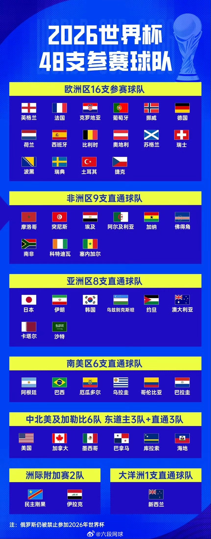 伊拉克晋级世界杯世界杯48强全部出炉世界杯预选赛洲际附加赛决赛,伊拉克2-1击败玻利维亚,时隔40年重返世界杯!至此,世界杯48支参赛球队全部出炉。意大利连续三届无缘!世界杯72天后将拉开帷幕!