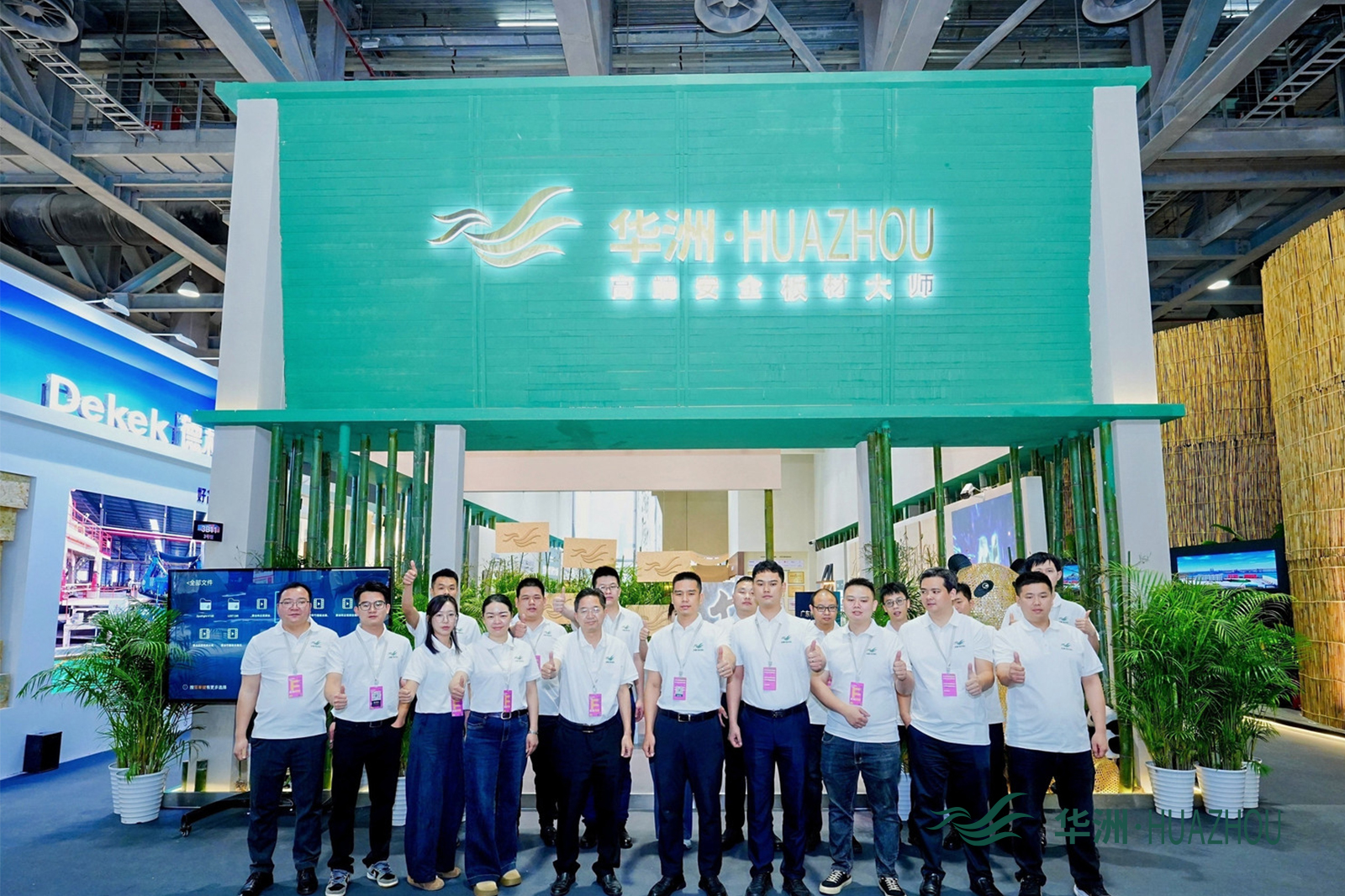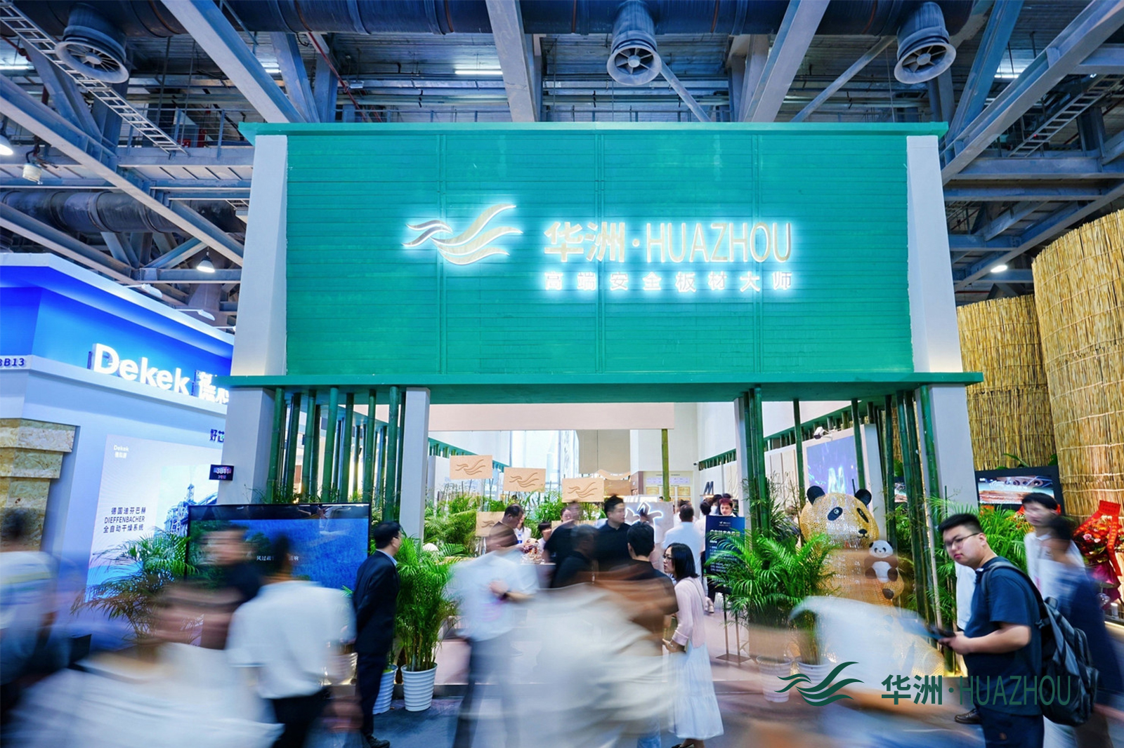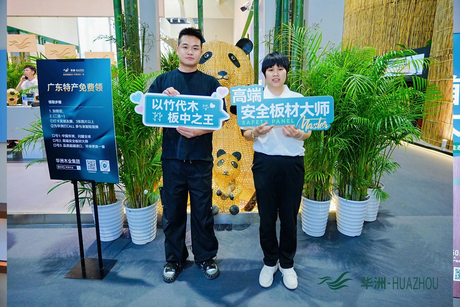 作为深耕板材领域28年的老牌企业,华洲木业此次参展精准贴合行业绿色环保、多元创新的发展导向,以“竹见新境”为核心主题,携全球首创竹馨板、金品澳桉板等七大核心系列惊艳亮相,将东方竹韵与现代家居科技完美融合,为现场观众带来了一场沉浸式的绿色家居体验。展厅设计巧妙融入原竹、竹制品、竹文化等东方元素,搭配天然鲜竹大板,让来访者在近距离感受产品质感的同时,深刻体会“以竹代木”的生态魅力,传递出品牌践行绿色低碳发展的坚定理念。