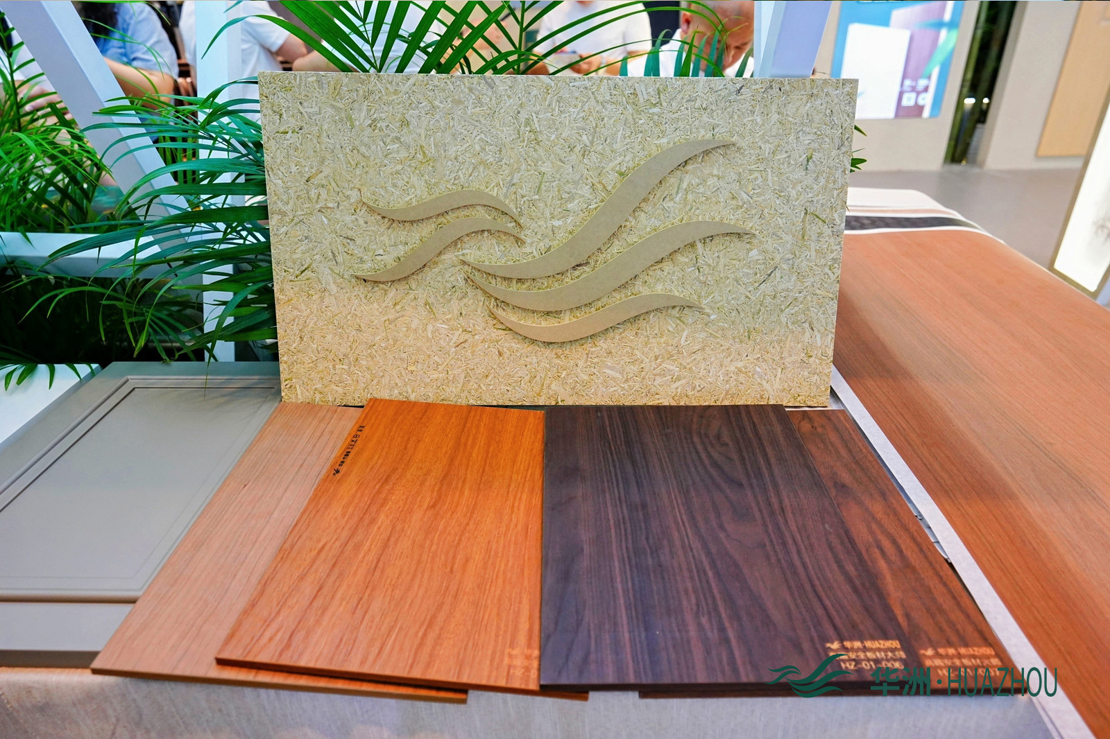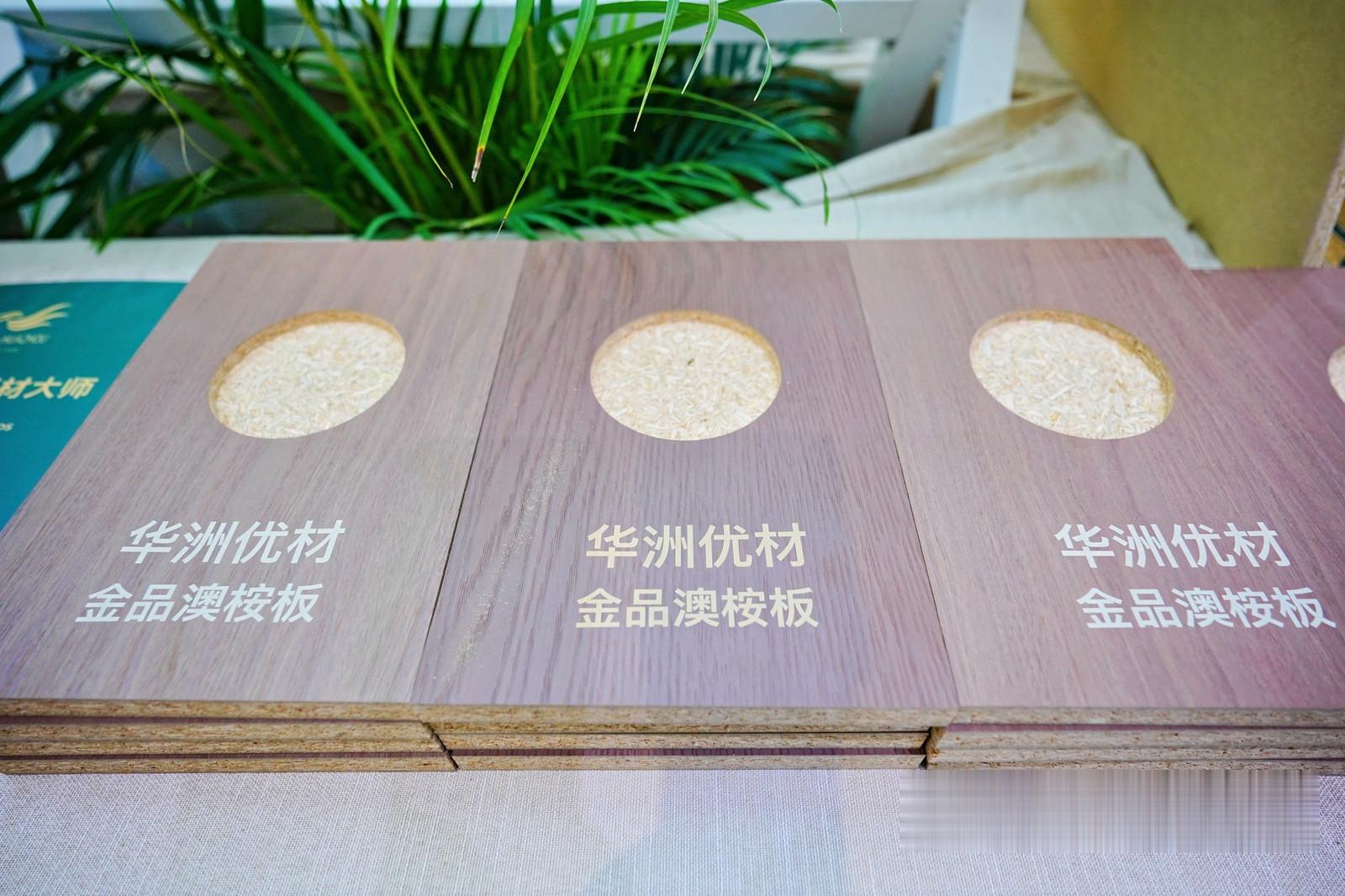 除了竹馨板,华洲木业展出的金品澳桉板、康强板等明星产品也备受青睐,进一步丰富了品牌的产品竞争力。其中,金品澳桉板以优质去皮桉木为原料,搭配MDI无醛胶,凭借突出的抗变形能力斩获行业金奖,解决了行业高定门板易变形的痛点,被众多头部定制品牌认可;康强板作为全球首张无醛添加刨花板,兼顾环保性能与结构强度,可满足多场景定制需求,现场赢得了来访者的一致好评。这些产品的亮眼表现,不仅展现了华洲木业在研发创新上的深厚积淀,也彰显了其在无醛环保、功能升级领域的行业领先地位。