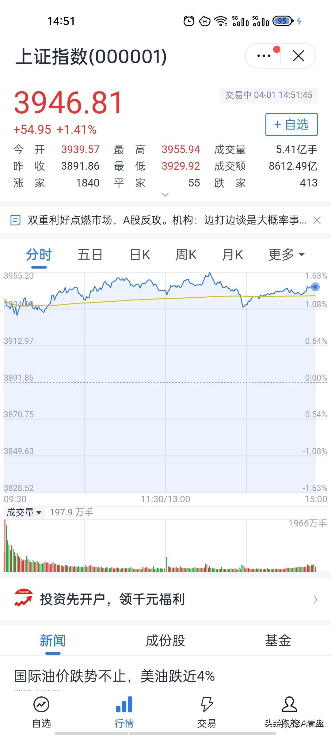 A股今天走出了一波不错的修复反弹,截至14:51,上证指数报3946.81点,涨幅1.41%,全天放量普涨,多头明显占优,市场情绪也从之前的低迷慢慢回暖,更像是前期连续下跌后的一轮修复行情,短期反弹趋势算是站住了,中期还是得看关键压力位能不能顺利过去。