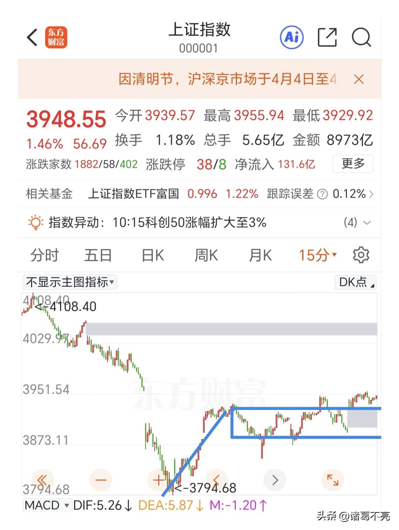 还有向上反弹的动力,耐心等待明天消息面的刺激。 明天早上9点,懂王会就伊朗问题发表谈话。如果是利好,那么市场就会再次高开冲一下。如果是利空,可能就回补下面的跳空缺口了。 回到结构上来,今天高开后震荡1天,是在构建新的中枢,还有向上反弹的预期。整个大的中枢结构正在升级,这个离开段才刚开始,或者还没有摆脱中枢,正在中枢上沿震荡酝酿着上涨的动力。 小中枢支撑看3923点,跌破了结构变弱就会向中枢下沿去寻求支撑了。 应对上,跌破支撑要等尾盘,再次拉高点时候要找卖点了。